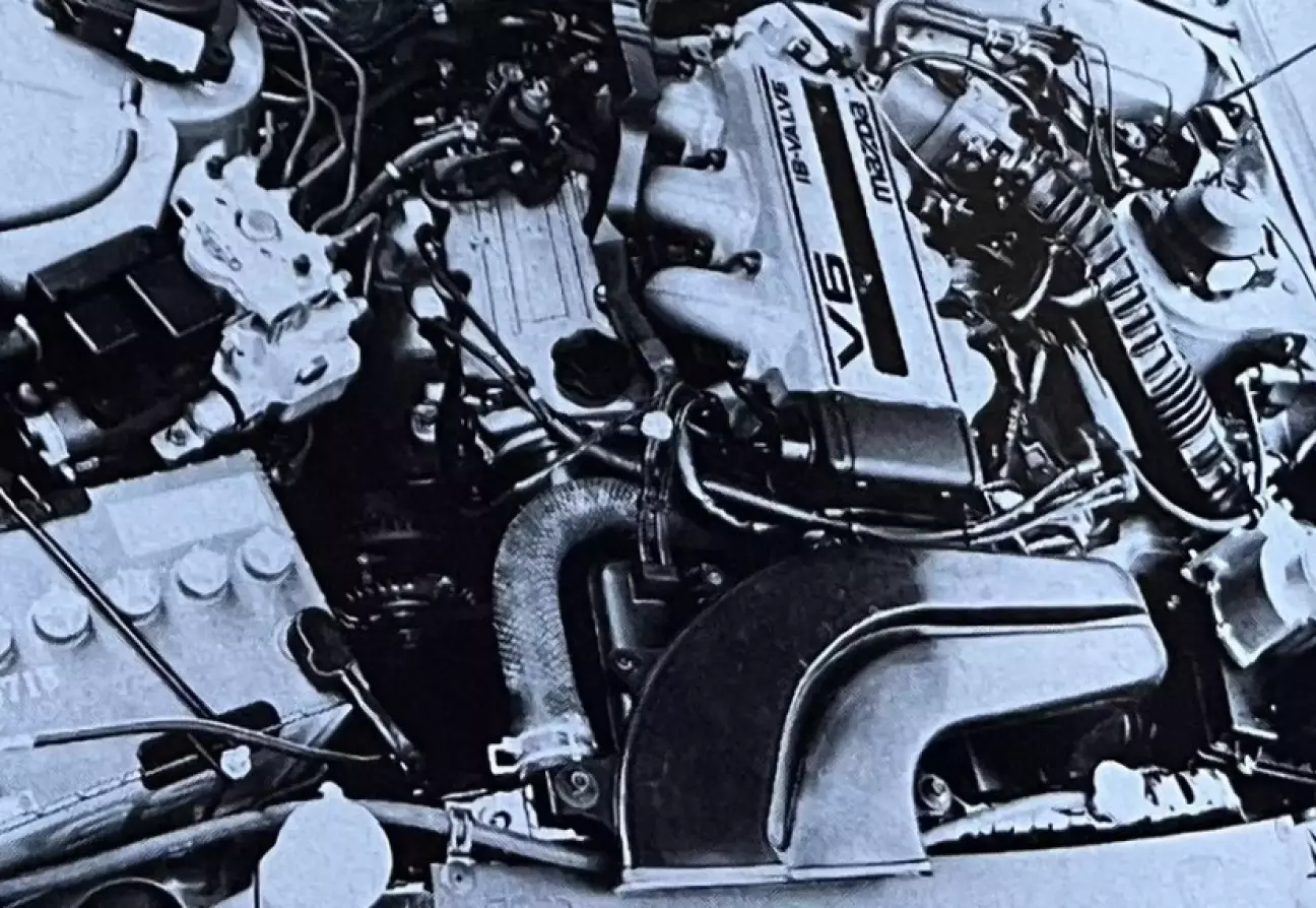 Японские инженеры выбрали для этого нового двигателя конфигурацию V6 с углом развала блока 60 градусов — идеальная формула для обеспечения исключительной плавности, мягкости и тишины работы. Как всегда, этот V6 короче классических рядных «четверок», но шире. Чугунный блок цилиндров имеет очень длинные юбки, что повышает его жесткость; коленчатый вал вращается на 4 опорах. Каждая головка блока выполнена из легкого сплава с одним распредвалом, который приводится общим зубчатым ремнем. Клапаны расположены под углом 38 градусов. На каждый цилиндр приходится по 2 впускных клапана и один большой выпускной. Их привод осуществляется через коромысла и гидрокомпенсаторы. Mazda с гордостью подчеркивает, что последние весят всего 12,5 г, что, по словам японцев, является рекордом легкости в этой области. Свечи зажигания расположены практически в центре треугольника, образованного тремя клапанами, — идеальное место для гомогенного воспламенения.