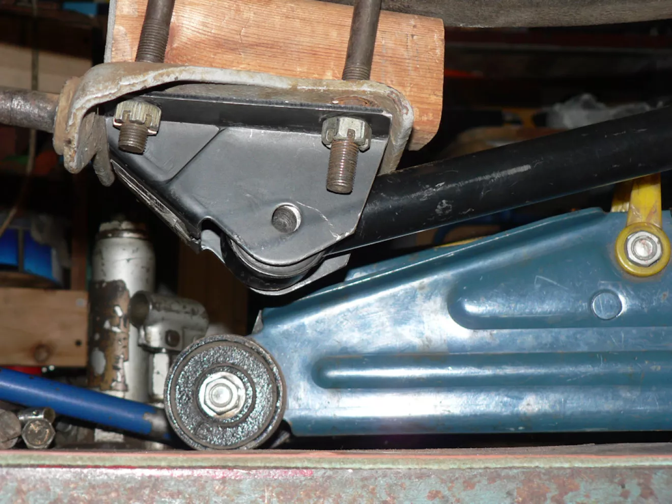 Т.к. накрутить мост моему мотору на рессоры будет на раз-два, то здесь трекшн-бар как бы даже очень неплохой выход из этой ситуации. НО рессора при всей её простоте и удобстве, обладает очень вредной особенностью — при перегибании из верхней к нижней точке при работе подвески, она меняет длину почти на 50 мм, т.е. редуктор "уезжает" от мотора и обратно на такую величину для ГАЗ-21.