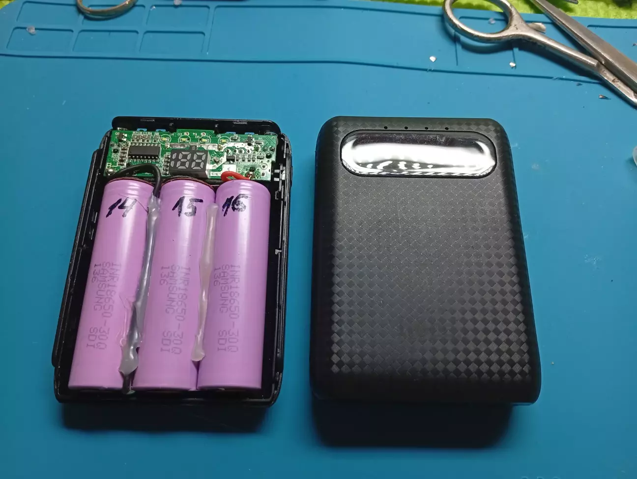 Перепакування стареньких невеличких паверів на 3 банки, бо китайські акуми вже своє відробили, працюють але ємність вже мала, перепаковую на акб Samsung INR18650-30Q? 3000mAh 15A