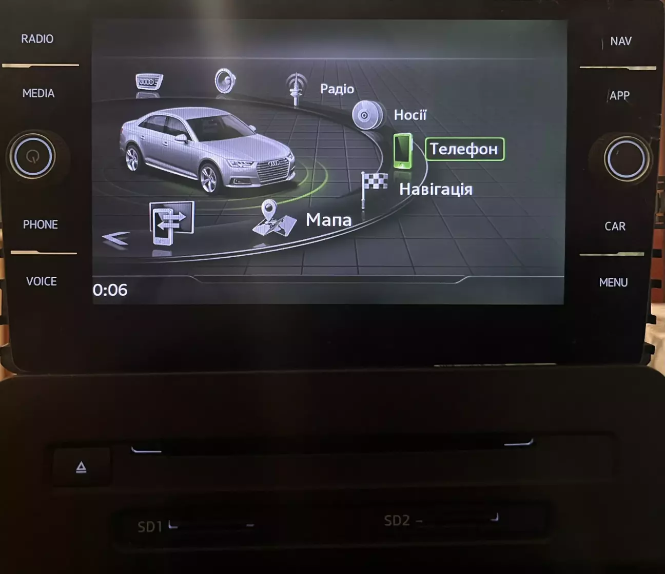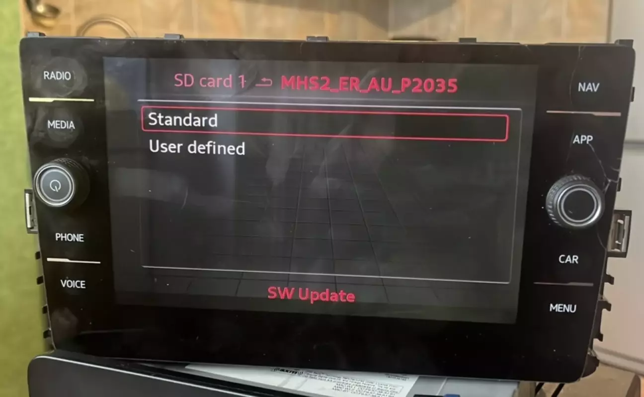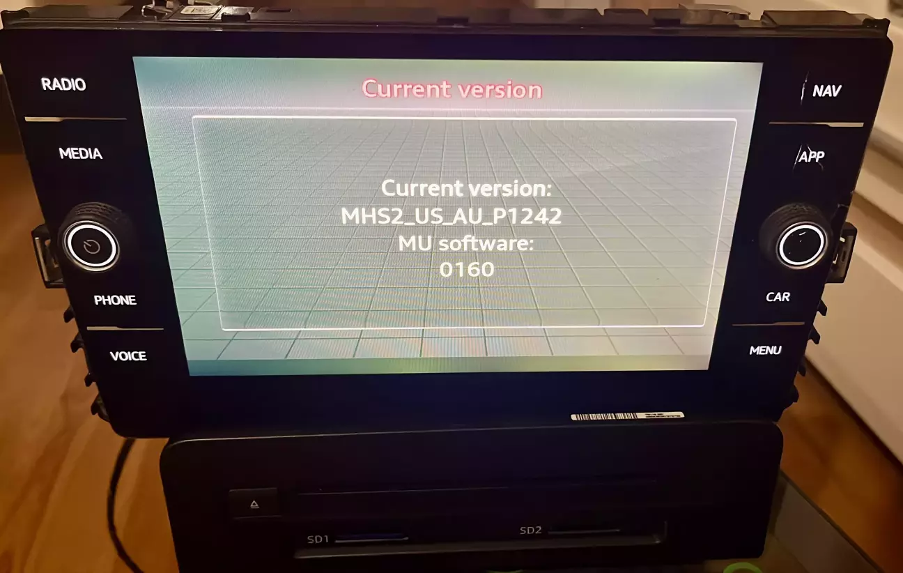 Але для того, щоб прийти до MHS2_ER_AU_P2035, потрібно спочатку підняти версію з MHS_US_AU_P1242 (яка була при стоці) до MHS_US_AU_P20237, все це робиться для того щоб оновити основні компоненти.Для повної зручності варто використовувати панель управління з джойстиком, так як в мене панелі немає. Використовую лише екран 5G6919605D постраждалий від уламків БПЛА, в принципі це не є проблемою, єдиною незручністю є відсутність кнопки BACK