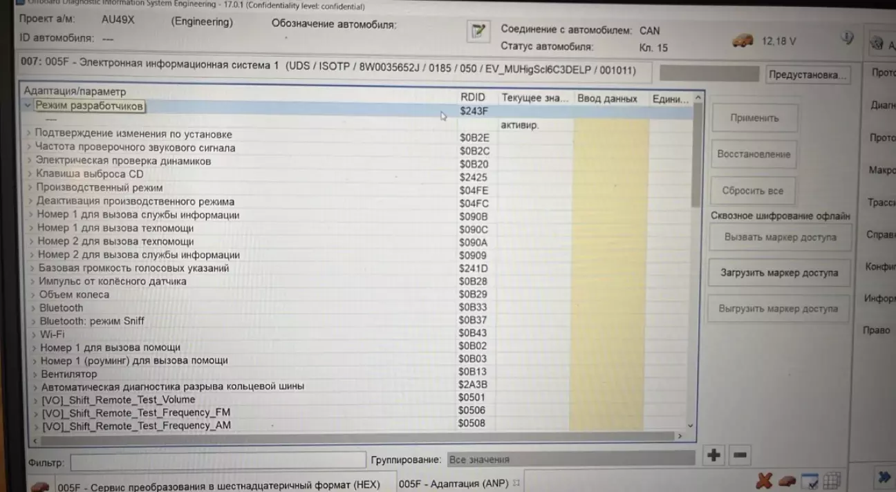 12. Активуємо user defined mode для цього одночасно затискаємо RADIO та NAV та тримаємо близько 10 сек. далі переходимо до production -> rcc_prod -> engeneering_prod і ставимо відмітку в квадраті manual SWDL- після цього затискаємо одночасно комбінацію гойдалки NAV і MEDIA і переходимо в Red Menu.