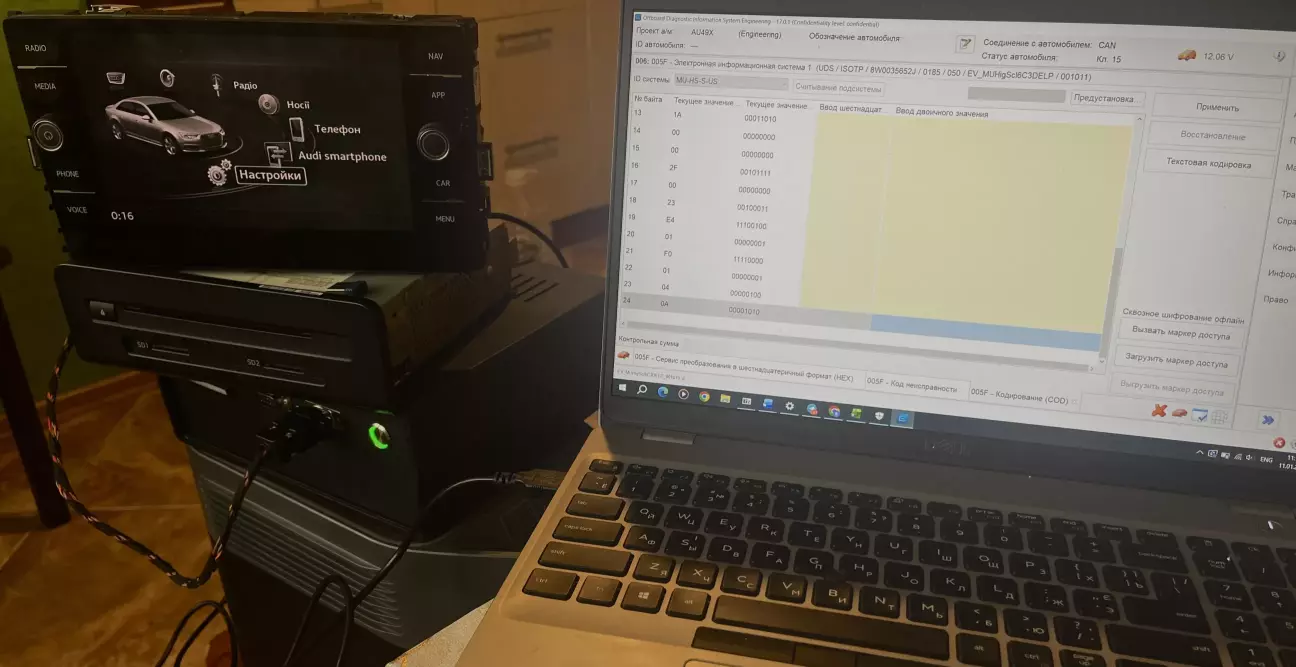 Початок Нового Року розпочався з «upgrade» стенда виробленого @mukich і тут гріх було його не перевірити на міцність. До цього в мене були в юніти Mib 2 Volkswagen, але в цей раз до рук потрапив блок MMI виробництва Delphi від Audi A4 B9, який щиро вимагав бути українцем 😁.