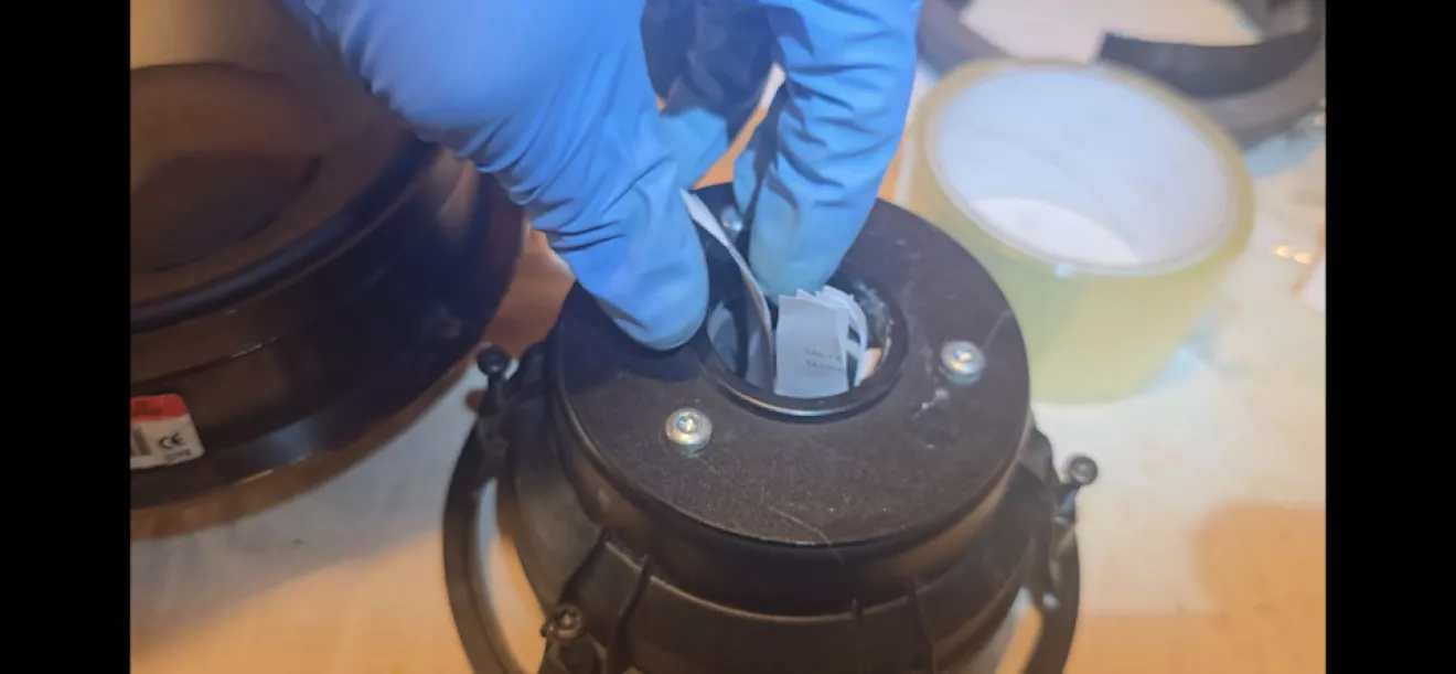 После сборки динамика, когда клей окончательно схватиться, можно аккуратно вытаскивать. Чтоб бумага не порвалась, я засовывал палец одной руки глубоко внутрь, как бы, меняя точку приложения силы, а другой рукой тянул за торчащий кончик.