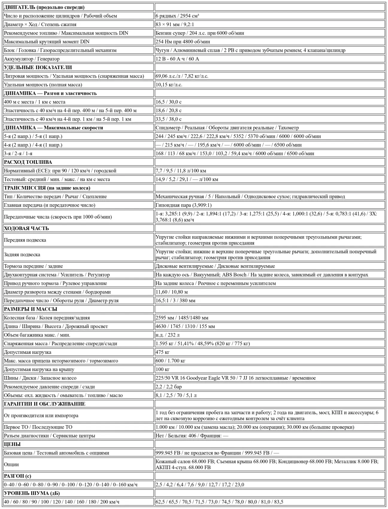 Цена красавицы? Внушительная, разумеется! Но при анализе оснащения она кажется абсолютно оправданной и даже рассчитанной с большой долей здравого смысла. Опции? Ограничены немногими позициями: кожа, люк, 4-ступенчатый автомат, кондиционер...