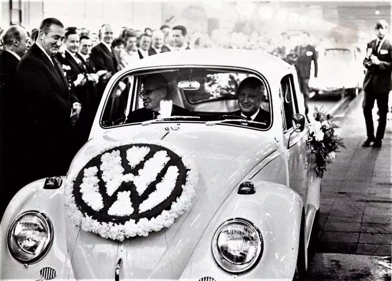 Святковий автомобіль з конвеєра вивів генеральний директор Volkswagen, професор Гайнц Нордгофф.