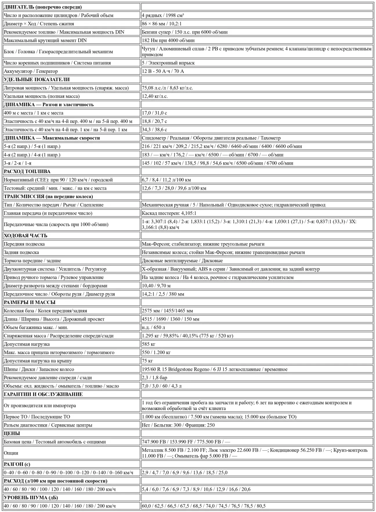 Новая 626 GTi — это откровение. Великолепный 2-литровый 16-клапанный мотор блестящ во всем диапазоне, предлагая потрясающую эластичность от 2000 до 7000 об/мин. Будучи скованным лишним весом полноуправляемого шасси (626 4WS весит 1300 кг), двигатель оказывается менее динамичным, чем у ряда нынешних конкурентов (взять хотя бы 16-клапанник от Citroën и Peugeot), но, на наш вкус, с более ровным напором (плод работы динамической резонансной камеры во впуске). И что немаловажно, этот прекрасный 2-литровый агрегат обладает более чем разумным аппетитом — ниже, чем у недавно протестированной Honda Civic 1600i, и на уровне европейских аналогов. У машины приятный дизайн; ее салон просторен и комфортен, хотя есть сомнения в шумоизоляции нашего экземпляра (это был один из самых первых автомобилей, ввезенных в Европу для омологации); другие Mazda 626 оказались заметно тише.