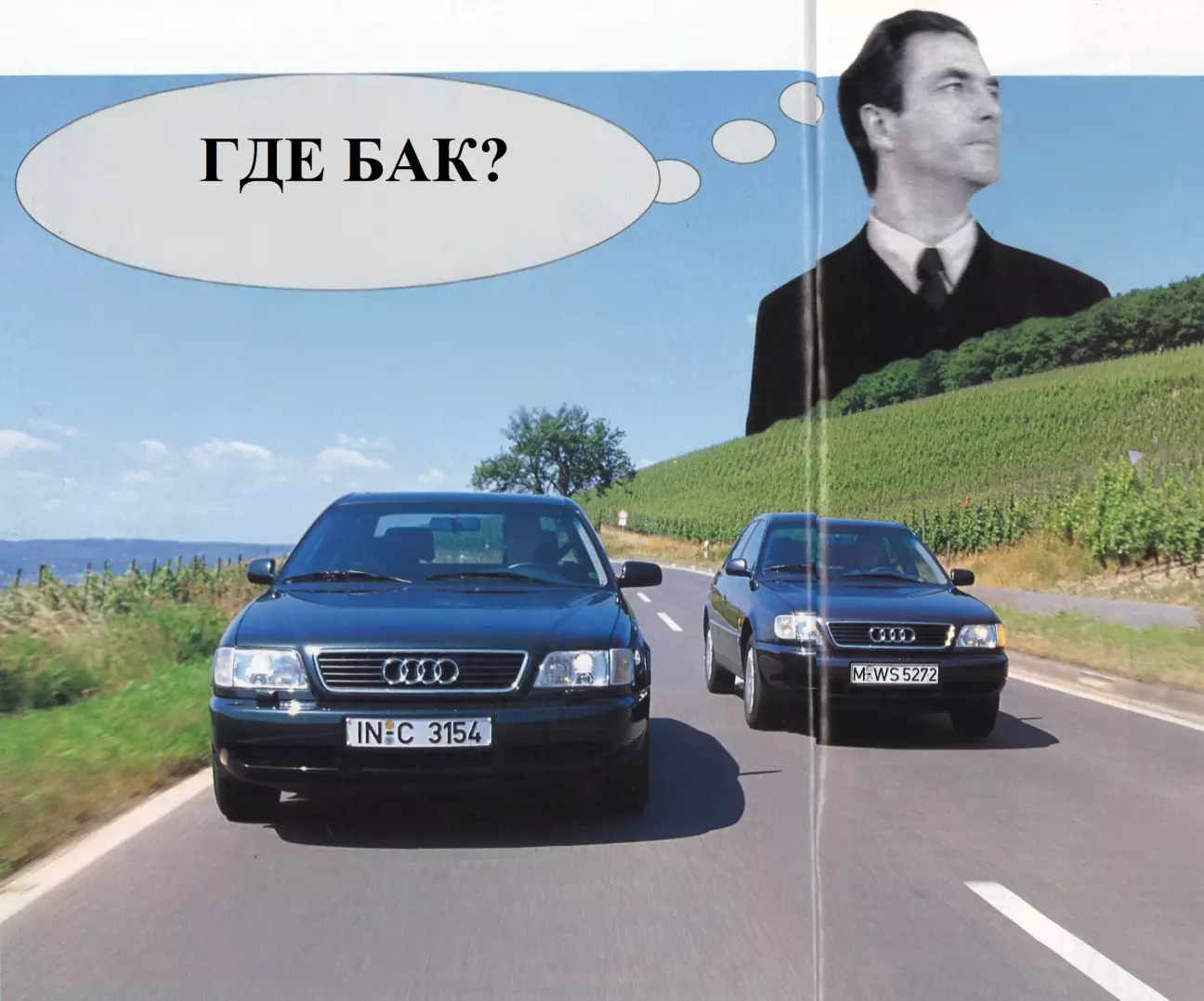 Название статьи и мужчина на заглавном фото взяты из известного рекламного ролика турбодизельной Ауди А6 С4 "Wo Ist Der Tank?". После феноменального успеха у публики Ауди потом ещё не раз использовала его в продвижении более новых моделей. Чтобы глубже погрузиться в тему перед прочтением, посмотреть рекламный ролик на ютубе можно вот тут: