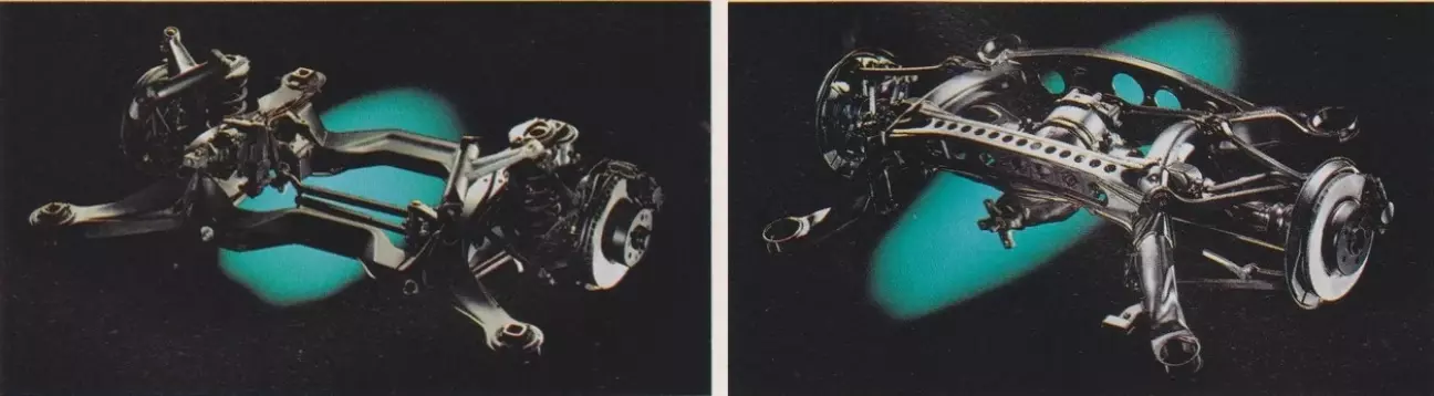 Ходовая часть: спереди двойные поперечные рычаги, винтовые пружины, стабилизатор поперечной устойчивости; сзади многорычажная подвеска, винтовые пружины, стабилизатор поперечной устойчивости
