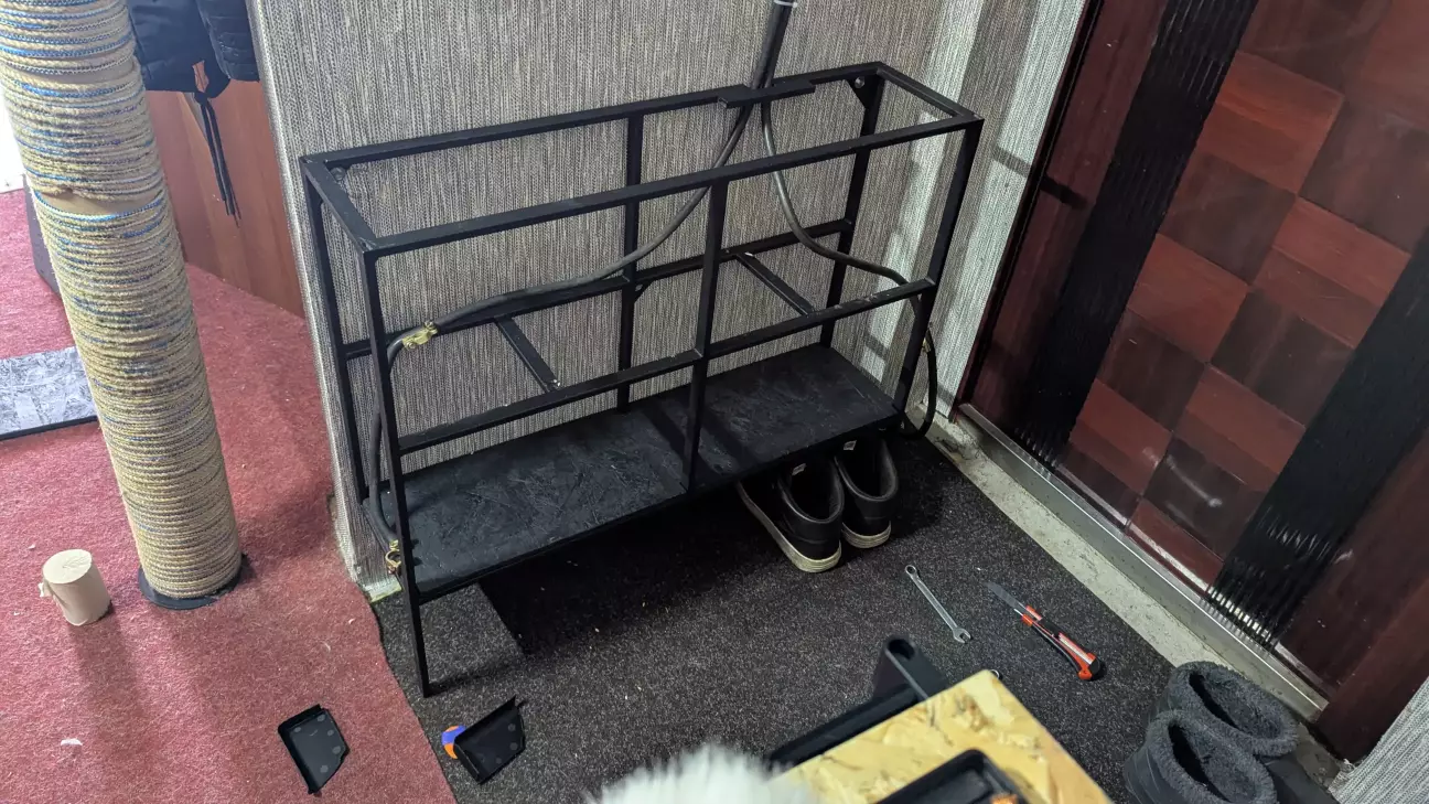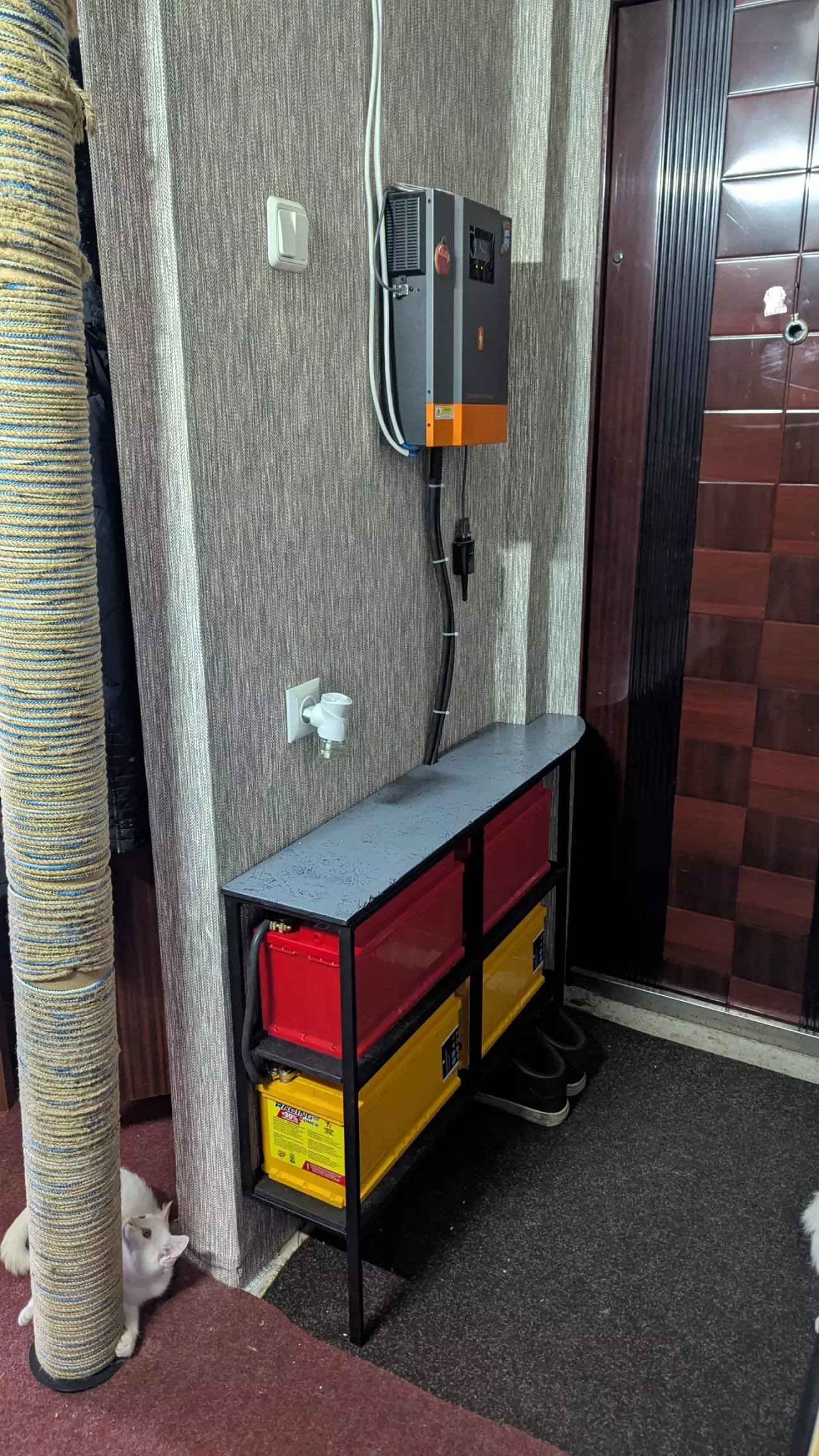 В общем сварил полку для акамуляторов, снизу сделал место для обуви, два уровня АКБ, ну и сверху полочка для ключей и всякого такого.