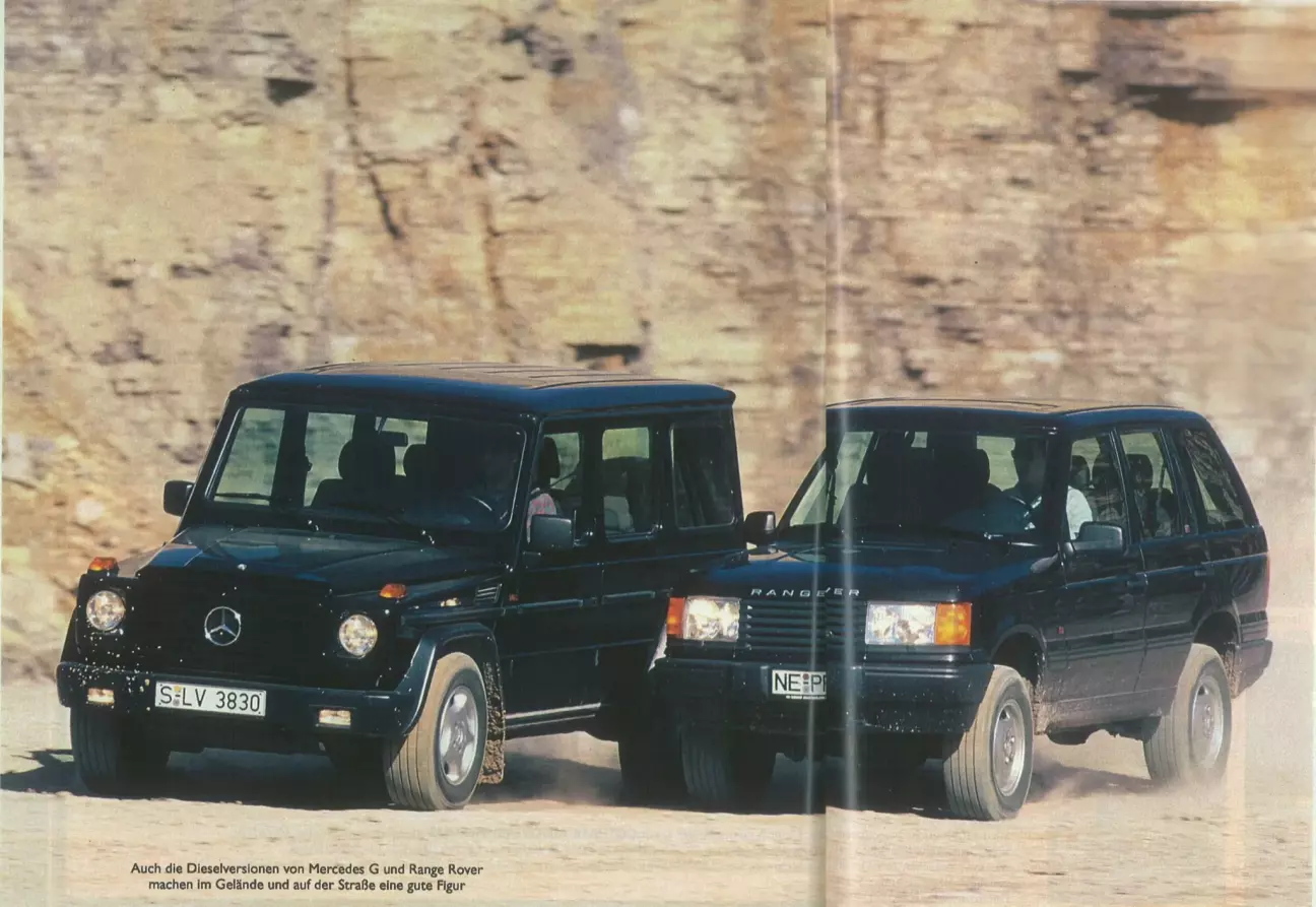 Перевод теста-сравнения Mercedes G 350 D vs Range Rover 2.5 DT от немецкого автомобильного журнального издания Auto Motor und Sport, № 08, 1995.