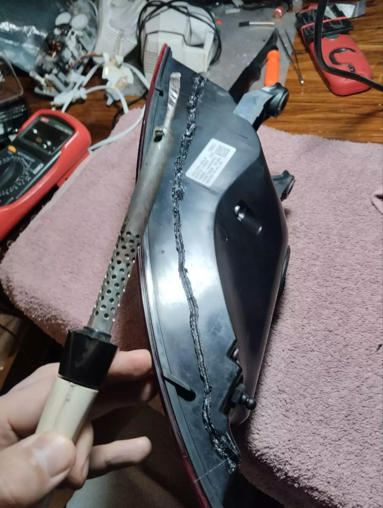 Тепер збірка в зворотньому порядку,потім спаяв тим же паяльником по шву і промазав для надійності силіконовим герметиком.