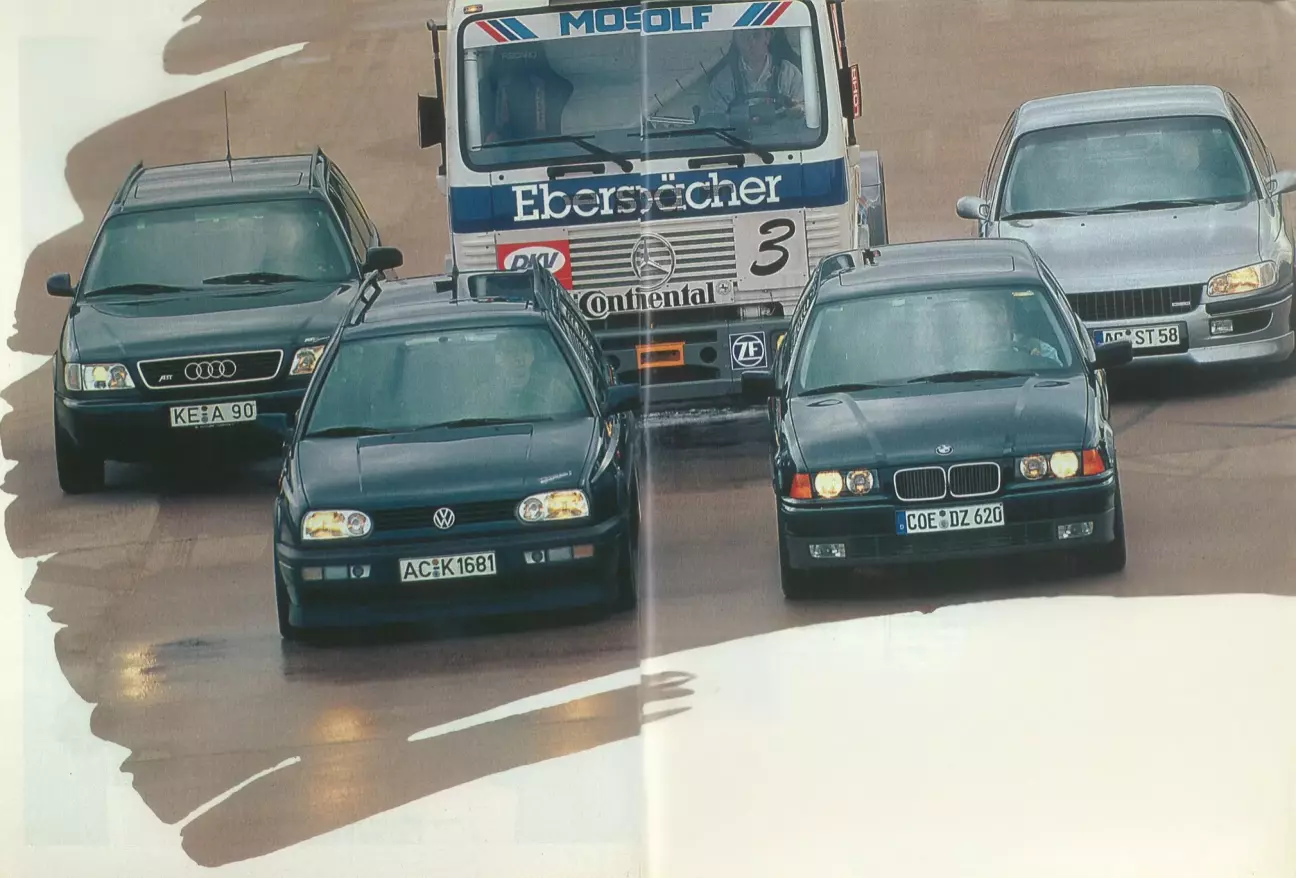 Перевод теста 4-ёх тюнингованных турбодизельных моделей Abt Audi A6 C4 Avant TDI, KW VW Golf 3 Variant CL TDI, Steinmetz Opel Omega B 2.5 tds, Wiesmann BMW 318 E36 tds Touring от немецкого автомобильного журнального издания Auto Motor und Sport, № 25, 1995.