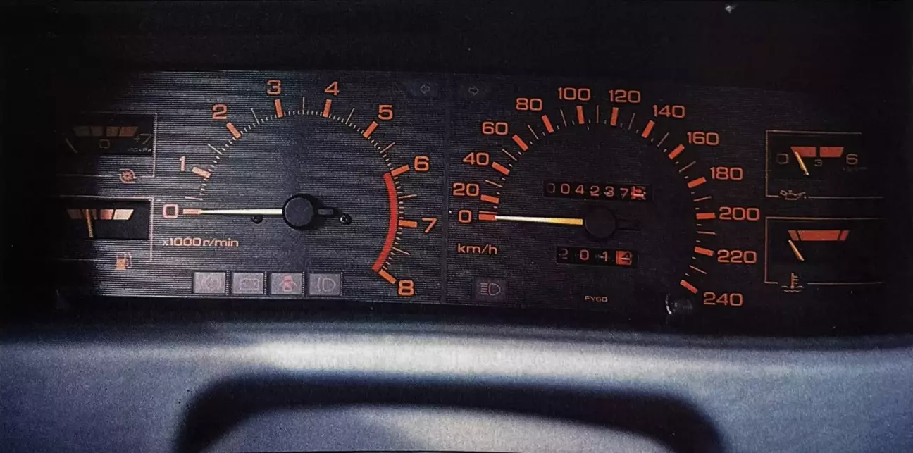 Откройте глаза... невозможно усомниться в том, что вы сидите в японском автомобиле! Стиль приборной панели, оформление щитка, расположение органов управления... Приборная панель почти полная. Она собирает в поле зрения водителя спидометр, тахометр, вольтметр, указатель уровня топлива, манометр давления масла в двигателе и указатель температуры охлаждающей жидкости. Очень хорошо, если не считать отсутствия манометра турбины, возможно, не всем нужного, но приятного для периодического ознакомления; а также выбора цветов (черный фон, оранжевые знаки и цифры), которые не всегда обеспечивают хорошую читаемость. Контрольные лампы в целом расположены удачно, за исключением ламп резерва топлива и обогрева заднего стекла, перенесенных к переднему пассажиру, в угол и положение, делающее их совершенно нечитаемыми (особенно при ярком внешнем свете). Органы управления удобно расположены по обе стороны от руля. Регулируемый руль, два наружных зеркала с электроприводом, дистанционное открытие задней двери и лючка бензобака — всё это практичные аксессуары. Словом, Nissan Silvia Turbo укомплектована полностью, не будучи при этом эффектной.