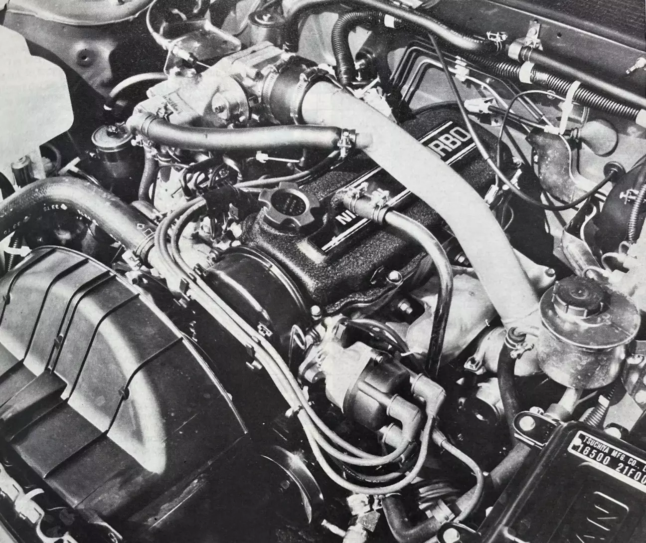 До этого момента двигатель CA18 ET вполне традиционен. Он выделяется на фоне привычных технических решений — хотя эта механическая философия встречается все чаще — своей системой питания. Речь идет прежде всего об электронном впрыске, во многом вдохновленном системой Bosch LH-Jetronic, включающем электронный блок управления, рассчитывающий моменты впрыска и количество топлива для каждой форсунки согласно информации от точных датчиков. Эта система разработана в сотрудничестве с Bosch, но носит марку Nissan ECCS (Engine Computerized Control System). В частности, она применяет одиночный впрыск на рабочий такт, стараясь максимально не нарушать эффективность мотора, что дает определенное улучшение расхода топлива! Электронный блок управления также заведует зажиганием. Он в режиме реального времени определяет моменты воспламенения газовой смеси в каждом цилиндре. Система питания дополнена турбокомпрессором Nissan. Последний также не является полностью «домашним» продуктом, а разработан американской компанией Air Research; он более известен под названием Garrett T2 — самый маленький, самый быстрый и самый динамичный из линейки Garrett. Именно его компания Renault выбрала для своих малых моделей Turbo.