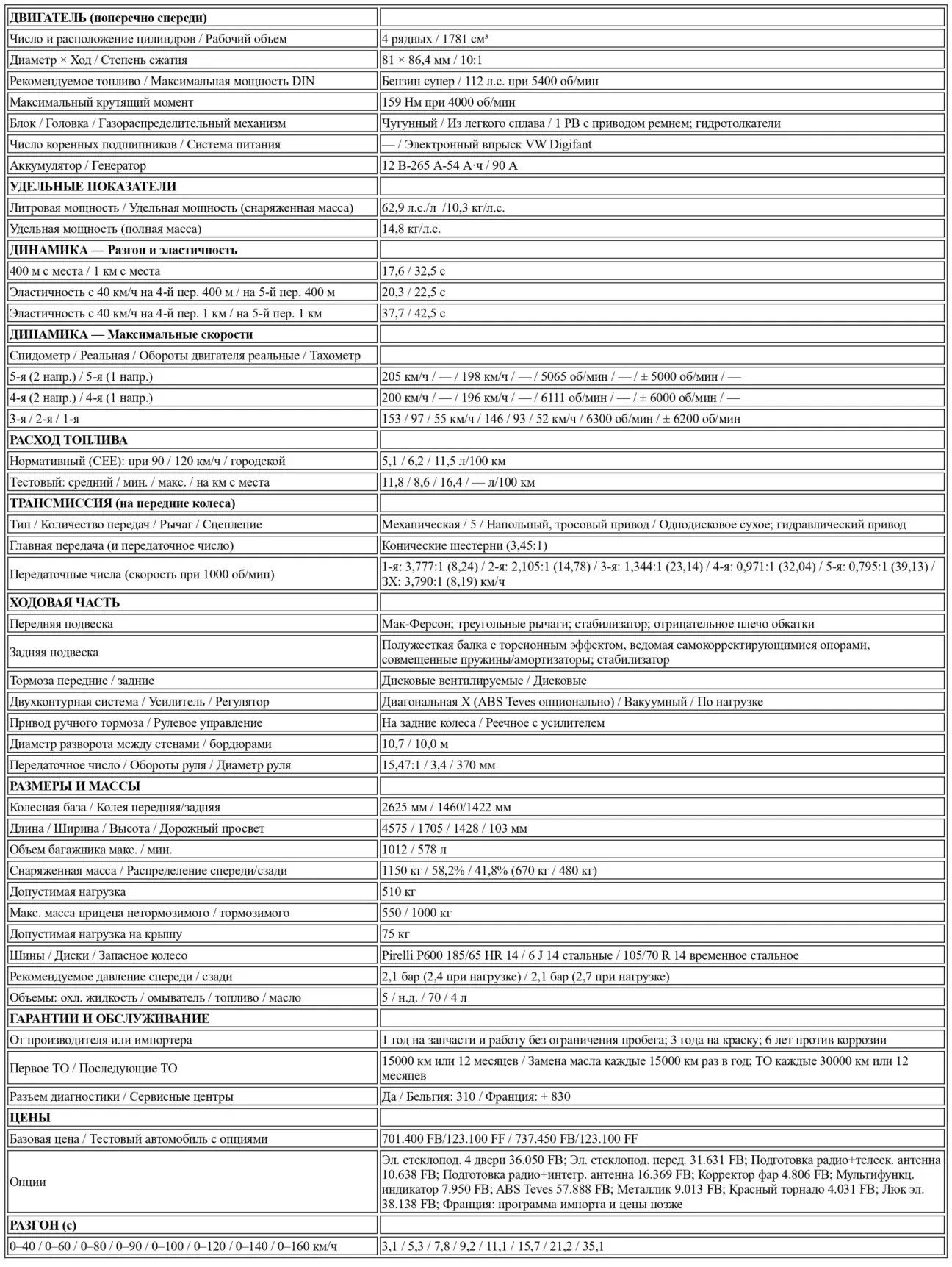 Хотя в будущем планируется версия с полным приводом, пока Passat сохраняет передние ведущие колеса. Поперечная установка силового агрегата дает массу преимуществ, но исключает использование громоздких пятицилиндровых моторов из линейки Audi. Из-за этого Passat сейчас вынужден довольствоваться скромными четырехцилиндровыми двигателями от Golf: 90, 112 или 136 л.с. для французского рынка, тогда как в Бельгии будет доступен и 1,6-литровый вариант мощностью 75 л.с. Эти моторы сочетаются с тремя уровнями отделки: CL, GL или GT. И хотя нам уже обещают версию с приводным нагнетателем мощностью около 160 л.с. и двигатель V6, который легко впишется в просторный моторный отсек, на данный момент Passat выглядит недоукомплектованным силовыми агрегатами на фоне конкурентов. При этом его цена заметно выше тех, что обычно практикуются в данном классе, что делает его положение среди семейных машин несколько обособленным. Мы не станем перечислять всех соперников, так как предложение в этом сегменте огромно, и для сравнительных таблиц ограничились репрезентативной выборкой по философии, динамике, вместимости и цене. Первой в алфавитном списке идет Ford Sierra 2000i, чье соотношение цена/качество остается привлекательным. Далее Mercedes 190 E — он вполне мог служить примером для создателей Passat, учитывая спокойный характер при умеренной мощности, а также безупречное качество сборки и отделки. Можно даже предположить, что разница в цене обусловлена исключительно престижем трехлучевой звезды. Наконец, логично сопоставить Passat с «Автомобилем года» Peugeot 405 в версии SRI и с Renault 21 с двухлитровым инжекторным мотором, чьи характеристики всегда считались хорошим ориентиром.