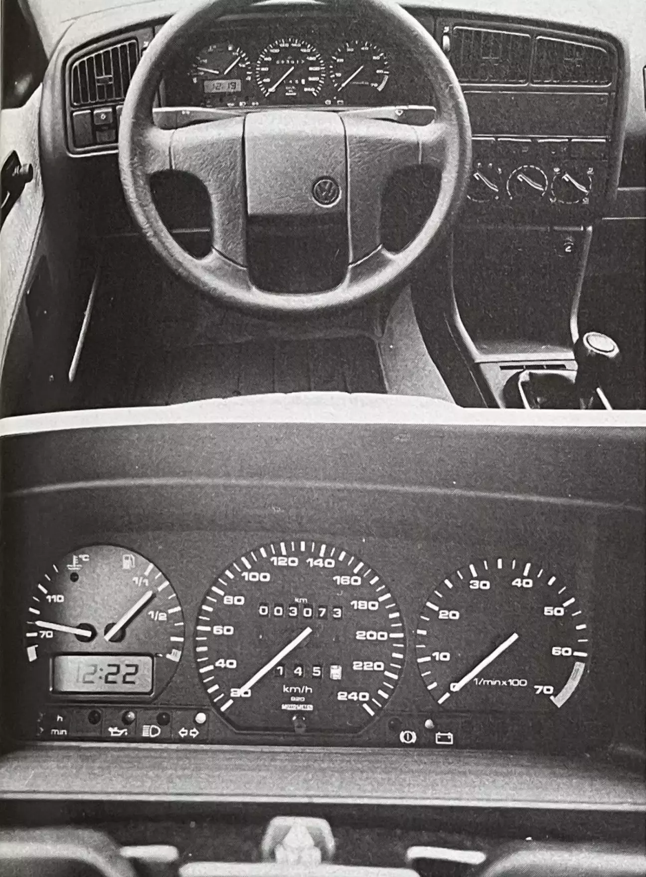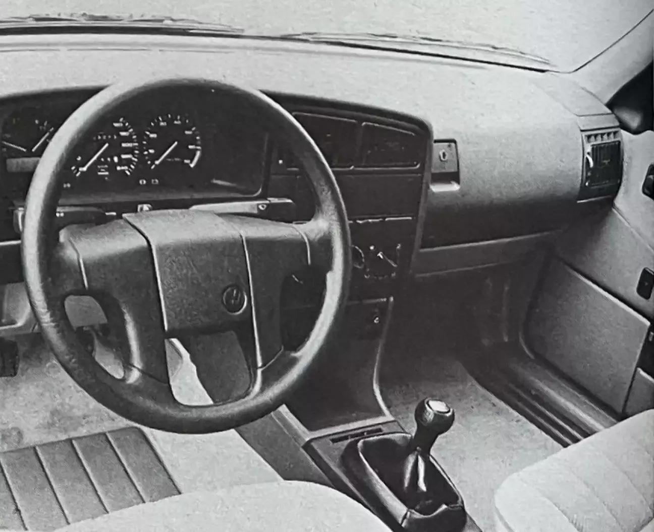 Что поражает сразу — это простор. В этой дисциплине Passat соперничает с машинами более высокого сегмента. Обычные семейные авто посрамлены: Renault 21 проигрывает по полезной длине салона целых 20 см. Французская машина, однако, сохраняет небольшое преимущество в ширине благодаря глубоким выштамповкам в дверях (1,48 м в плечах против 1,44 м у Passat). И спереди, и сзади пассажирам вольготно, кроме пятого, которым пожертвовали. Задний диван отформован под два комфортных места с хорошей боковой поддержкой. Среднее место для взрослого непригодно, здесь лучше использовать подлокотник. Кроме того, Passat вводит новшество в классе — раздельную регулировку частей заднего сиденья (1/3-2/3). Подушку можно сдвинуть вперед на 80 мм для расслабленной позы, а спинку поставить вертикальнее для увеличения багажника. Еще один аргумент в пользу того, что пятый пассажир здесь лишний. Передние кресла жестковаты, но профиль удачен. Хотя подушка водительского сиденья регулируется по высоте, посадка за рулем не показалась нам столь же безупречной, как обычно у машин концерна. Возможно, руль расположен слишком далеко от педалей. Впрочем, удобное положение найти можно, остается подстроить ремень безопасности и подголовники. Подвеска, не допуская раскачки или кренов, достаточно мягко разглаживает неровности. Превосходная шумоизоляция моторного отсека и низкий уровень аэродинамических шумов придают Passat характер комфортабельного лайнера. Качественная система отопления и вентиляции дополняет картину. Атермальные стекла входят в стандартное оснащение, а большая площадь остекления делает салон светлым. Интерьер предлагает массу мест для хранения, хотя пластик крышек на передней панели кажется излишне легким на фоне общего высокого качества отделки.