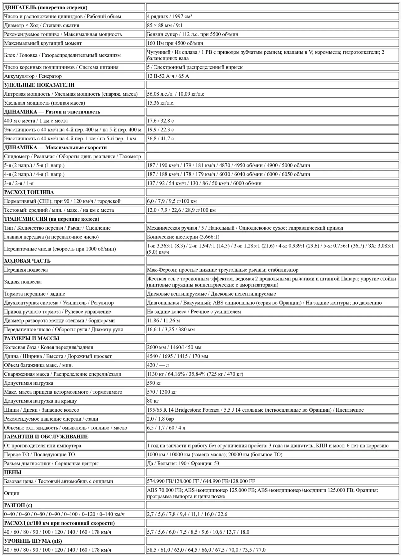 Здесь нас ждет первый сюрприз — практическое воплощение нынешней философии Mitsubishi. Предчувствие возникло еще при изучении технических характеристик, которые без ложной скромности обещают максимальную мощность в 112 л.с. (удельная мощность 56,08 л.с./л), что для двухлитрового объема не является чем-то выдающимся. Современные моторы обычно выдают больше. Пик мощности достигается при 5500 об/мин, что доказывает: двигатель проектировался скорее эластичным, чем мощным! Кстати, максимальный крутящий момент составляет 160 Нм. Это совсем неплохо, хотя иные производители бывают щедрее. Главное, что этот подхват достигается на 4500 об/мин, причем полка момента почти не проседает в диапазоне от 2000 до 4800 об/мин. Взгляд на заявленные цифры: при максимальной скорости 188 км/ч и разгоне до 100 км/ч за 10,6 секунды Galant 2000 — не спортсмен, а скорее «буржуа». Тем более что мотор не перегружен весом: снаряженная масса составляет 1130 кг.