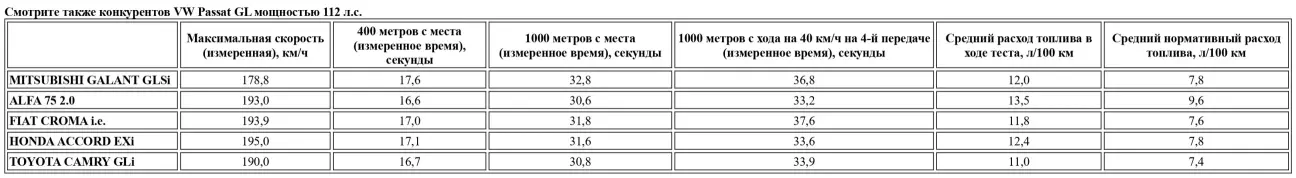 В таких условиях не стоит ждать рекордов скорости. Доставшийся нам Galant 2000 развил лишь 178,8 км/ч (лучший результат в одном направлении — 181,5 км/ч). Эта скорость была достигнута на пятой передаче при 4870 об/мин. На четвертой быстрее не получилось: Galant наотрез отказался превышать 178,4 км/ч (среднее значение) при 6027 об/мин, и эта цифра была вымучена после очень долгого ожидания. Хвастаться нечем. Впрочем, наш экземпляр вполне соответствовал паспортным данным. Рубеж в 100 км/ч был взят за 11,1 секунды (на 0,6 секунды медленнее, чем заявляет Mitsubishi), а километр с места автомобиль преодолел за 32,8 секунды — результат не выдающийся, но достойный интереса. Эластичность еще нагляднее раскрывает темперамент мотора: и на четвертой, и на пятой передачах Galant берет паузу на «раздумье» перед ускорением, затем будто расправляет крылья, слабеет к 3000 об/мин (около 115 км/ч на пятой) и снова обретает энергию к 3500 об/мин (120 км/ч на четвертой). Как ни странно, это в точности соответствует кривой крутящего момента.