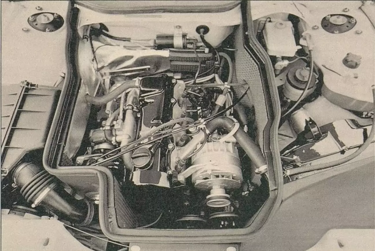 Оснастить исследовательскую Audi, вес которой составил внушительные 1200 кг, двигателем рабочим объемом 1,6 литра — при этом не самым «маломерным» по кубатуре — было осознанной целью инженеров. Подходящий силовой агрегат нашелся в отделе разработки двигателей концерна VW-Audi. Это вариант миллион раз проверенной 1,6-литровой «четверки», но с алюминиевым блоком цилиндров. Целевая мощность около 110 л.с. была достигнута не серийными средствами (впрыск и высокая степень сжатия). Чтобы добиться того же результата, Audi сделала ставку на турбонаддув. Гюнтер Крёмер, моторист-разработчик из филиала в Неккарзульме, обосновывает это так: «Мы хотели получить двигатель с особенно высоким крутящим моментом». Данные малого турбомотора подтверждают верность решения: 168 Нм выдает наддувный агрегат при 3500 об/мин. Для сравнения, 1,6-литровый инжекторный мотор Audi 80 GTE выдает лишь 137 Нм, причем только при 5000 об/мин. А 1,9-литровый пятицилиндровый двигатель — 154 Нм при 3700 об/мин. Своей пиковой мощности турбомотор достигает на относительно низких оборотах. 108 л.с. зафиксированы при 5000 об/мин. Двигателю GTE для такой же отдачи требуется 6100 об/мин. Великолепная тяга турбины была получена сравнительно простыми средствами. Пих: «Денег у нас в любом случае было немного». Так, за смесеобразование отвечает не сложная система впрыска, а простой карбюратор постоянного разрежения фирмы SU из Англии.