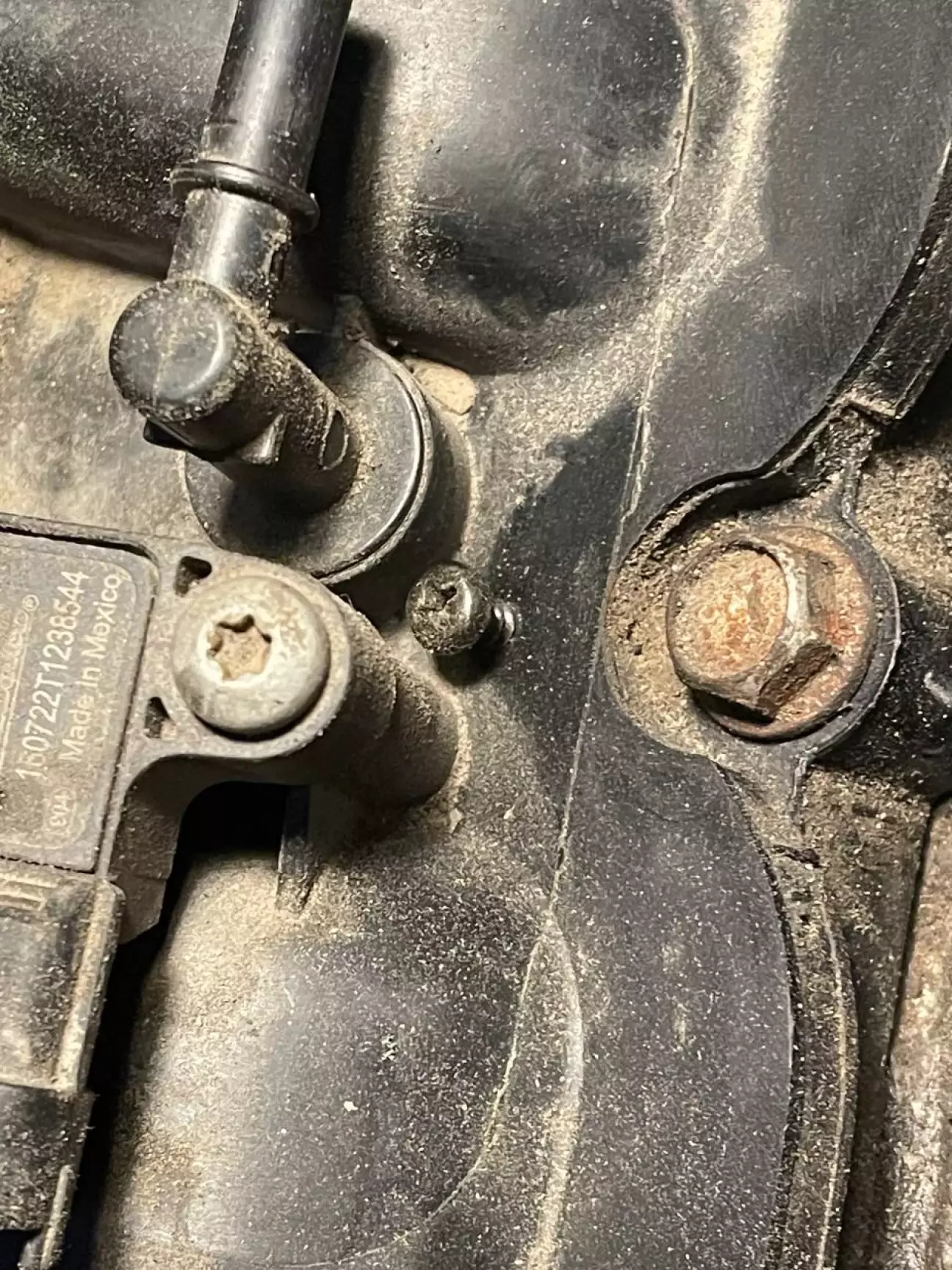 Крім чистики вирішили модифікувати цей колектор наступним чином: просверлити отвір навпроти PCV клапану і вкрутити туди саморіз.