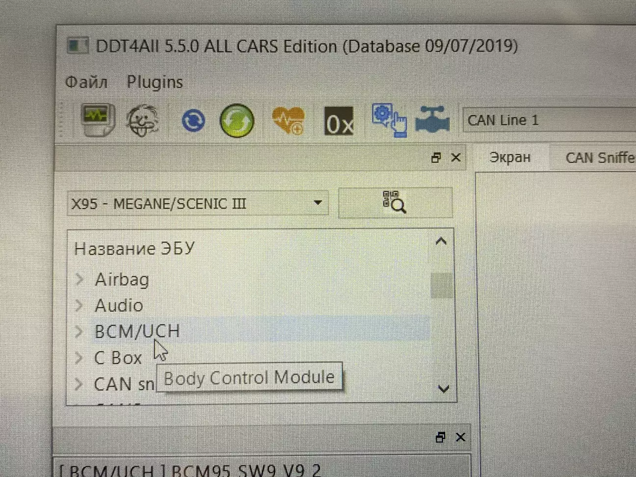 В общем, стал я временным обладателем этого, даже можно сказать, легендарного автомобиля. Всё с ним было в полном порядке, но ни с того ни с сего выскочила на приборке ошибка «Kindersicherung Prüfen». Или у кого меню на английском - check child safety device, что в переводе значит «проверьте детскую безопасность». Никакие проверки успехом не увенчались. Пробовал перещелкивать в задних дверях «детские» переключатели , проверял контакты разьемов дверей, открывал/закрывал окна туда сюда, миллион раз нажимал на кнопку блокировки задних окон (кстати красный светодиод не светится) - ничего не помогало, ошибка не уходила, хотя все функции работали нормально, как и должны работать. Сканировали лаунчем - ошибок он не видел. В общем это какой-то глюк системы. В интернете наткнулся на статью, где описывался способ лечения этой необычной болезни. Всё оказалось просто! Нужен Android телефон/планшет или Windows ноутбук, простой OBD2 сканер и приложение EcuTweeker или для Windows DDT4ALL. Андроид устройств у меня не было, поэтому делал с ноутбука. В меню слева выбираем ваш автомобиль, в моем случае Megane III. Далее в подменю ниже открываем последовательно: