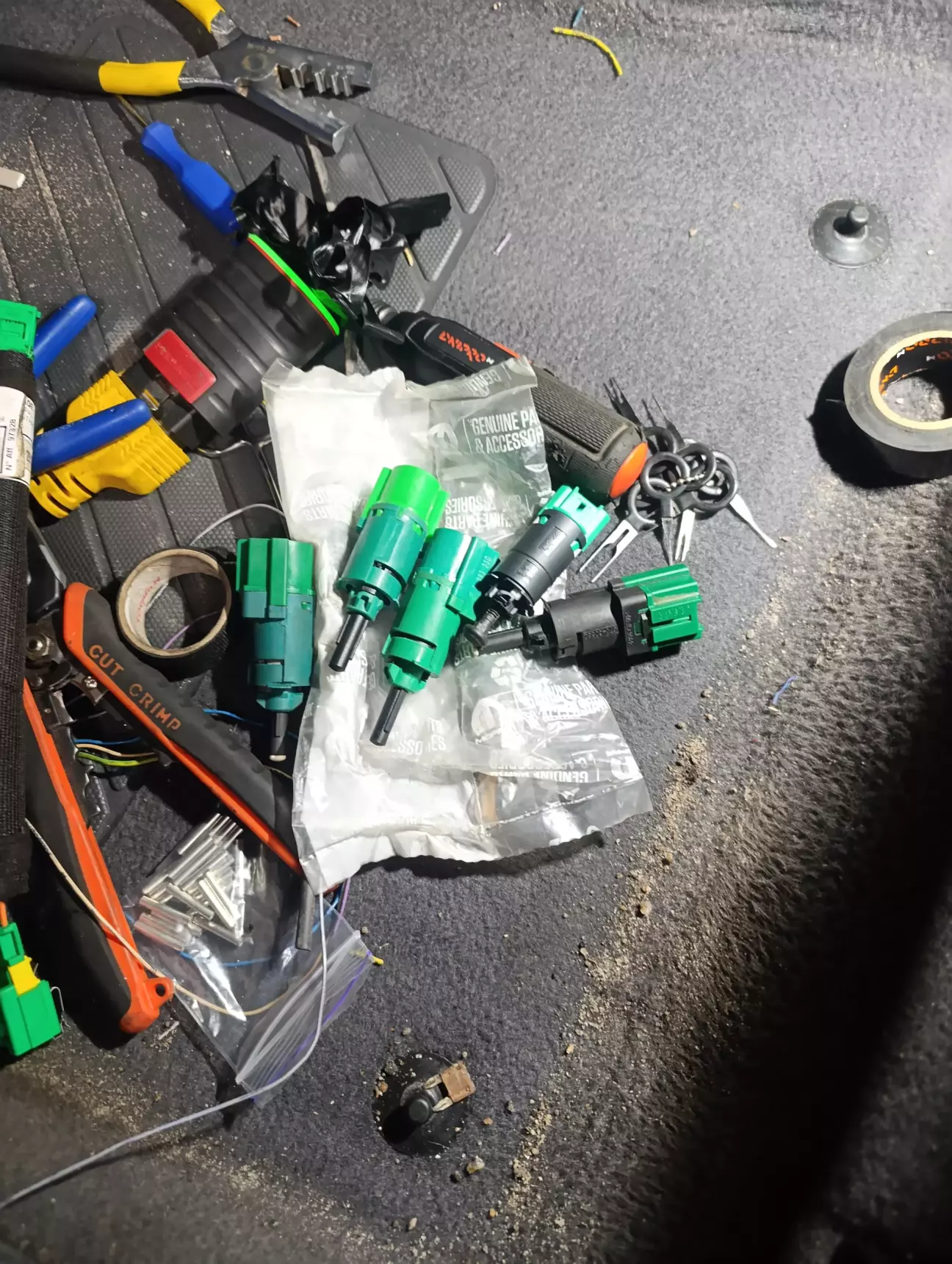 18-40 починаємо, перевірка всіх дротів, всі дзвоняться але мені дуже не подобається до встановлена сигналізація і ізолента на дротах на жабку.