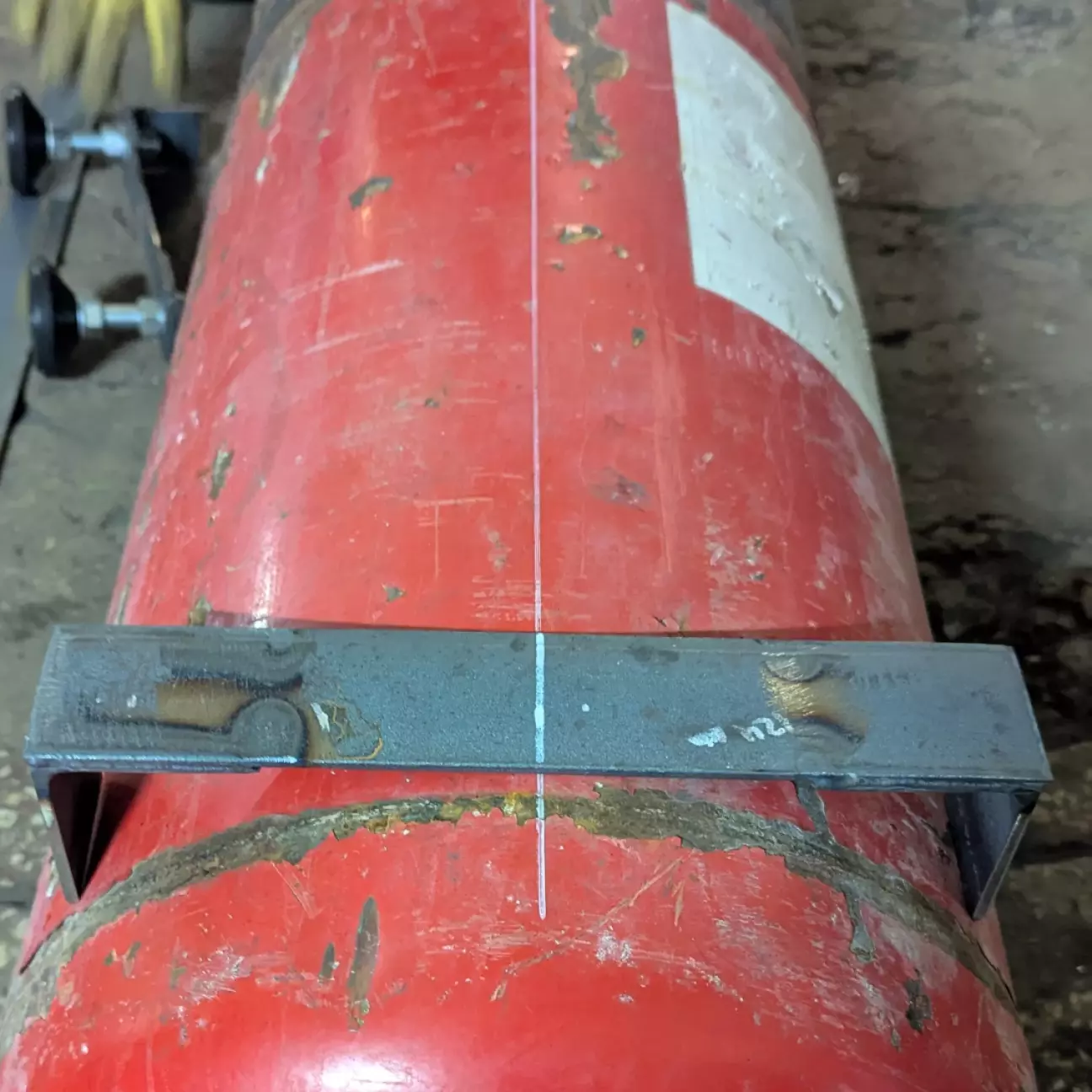 Після зварювання ресивера і підбору голови з двигуном почав із базових речей. Потрібно було зробити основу, на якій уся конструкція буде стояти. Робити її було нізчого, і я придбав 2 метри смуги 50мм*4мм, а також кутник 4м в розмірі 50*50*4мм.