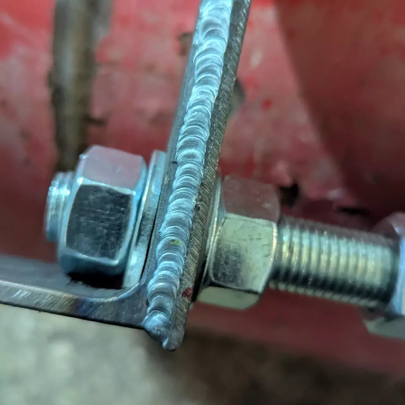 Оскільки опори з болтом були короткуваті, а найти болта на м16*260мм з повною різльбою проблема, взяв 2 гайки і шпильку тай заварив все до купи, думаю для гіхок більше чим достатньо.