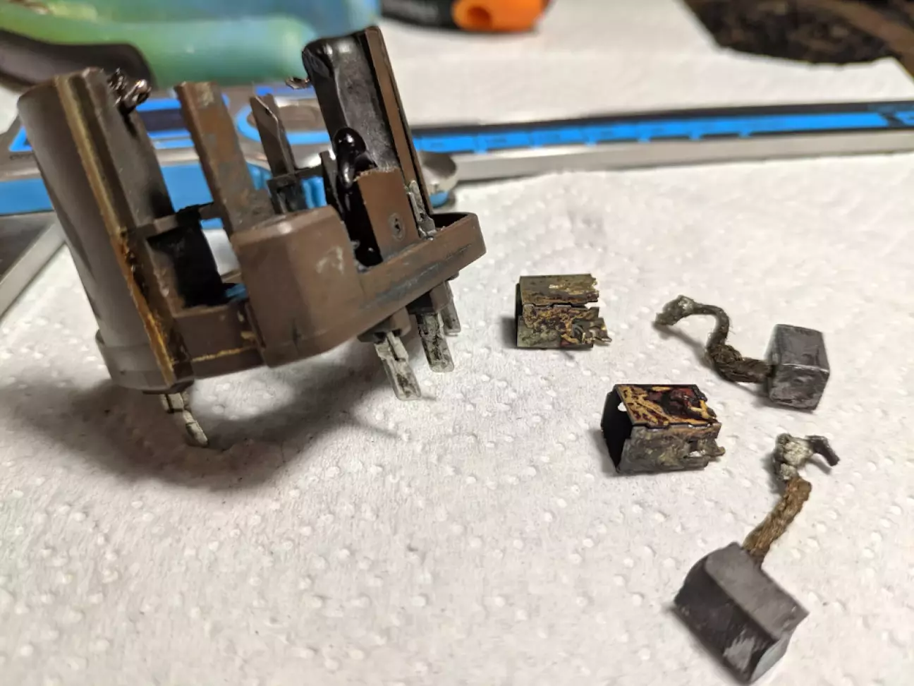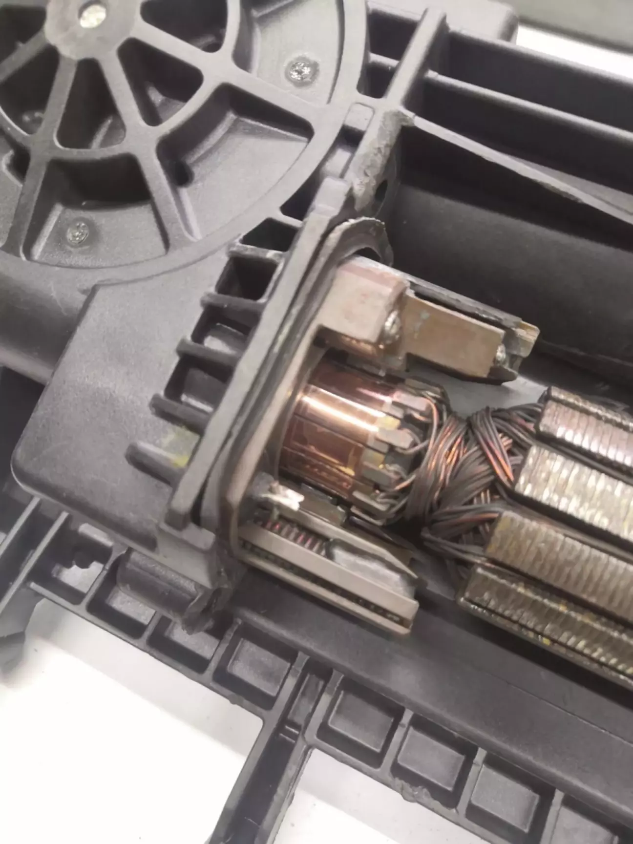 Ми акуратно демонтуємо кришку, не пошкодивши термопластиковий корпус. Старі щітки виймаються, а пружини перевіряються на пружність.