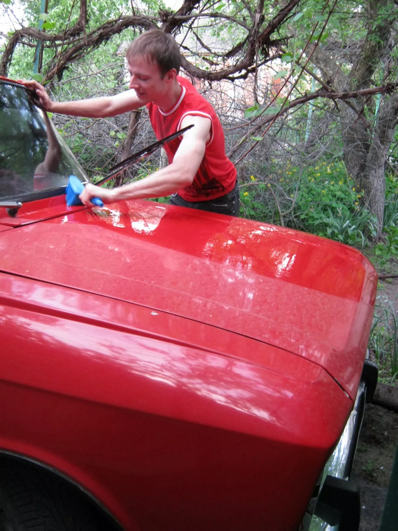 КААААК… Как он её мыл=) Эти влюбленные глаза сияли не меньше, чем довольная улыбка=) Эти телодвижения… Ах, как он её любит=) Вооот, ребят, вот так надо ухаживать за машинами!=)