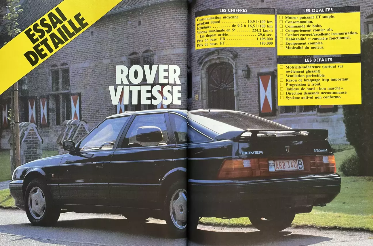 Признаемся честно, этот тест Vitesse нам понравился. Наконец-то автомобиль с типично английской атмосферой, надежный и хорошо собранный. Техническая часть родом из Японии, да еще и от Honda, что не может не быть позитивным фактором. Особенно теперь, когда изменения в двигателе позволяют сочетать мощность и эластичность без ущерба для расхода топлива. Отличная коробка передач идеально подходит этому агрегату, а музыка, которую он исполняет, просто божественна. Более плотная «спортивная» подвеска обеспечивает не только отличную управляемость, но и лучший комфорт, чем в Legend или Sterling, оказавшихся слишком мягкими. Если бы это зависело от нас, все версии получили бы такой тип подвески. Общие формы напоминают старый Vitesse (что очень хорошо), и автомобиль не заслуживает упреков ни по вместимости, ни по функциональности, ни по шумоизоляции. Руль, напротив, заслуживает меньших похвал, а радиус разворота откровенно критикуем. Зацепа и тяги недостаточно практически на любом покрытии, а система вентиляции не справляется с огромными стеклами. Приятный интерьер, очень British (великолепная обивка сидений и отделка деревом), отчасти испорчен заурядной и неточной приборной панелью, не говоря уже о том, что некоторые индикаторы предпочитают играть в прятки, а не быть функциональными. Но это лишь частные замечания по поводу удачного автомобиля, предлагаемого по конкурентоспособной цене, если учесть уровень оснащения. Будем надеяться, что Rover удастся постепенно сделать своей репутацию качества, ставшую легендарной у Honda, что пойдет на пользу всей британской автопромышленности (точнее, тому, что от нее осталось).