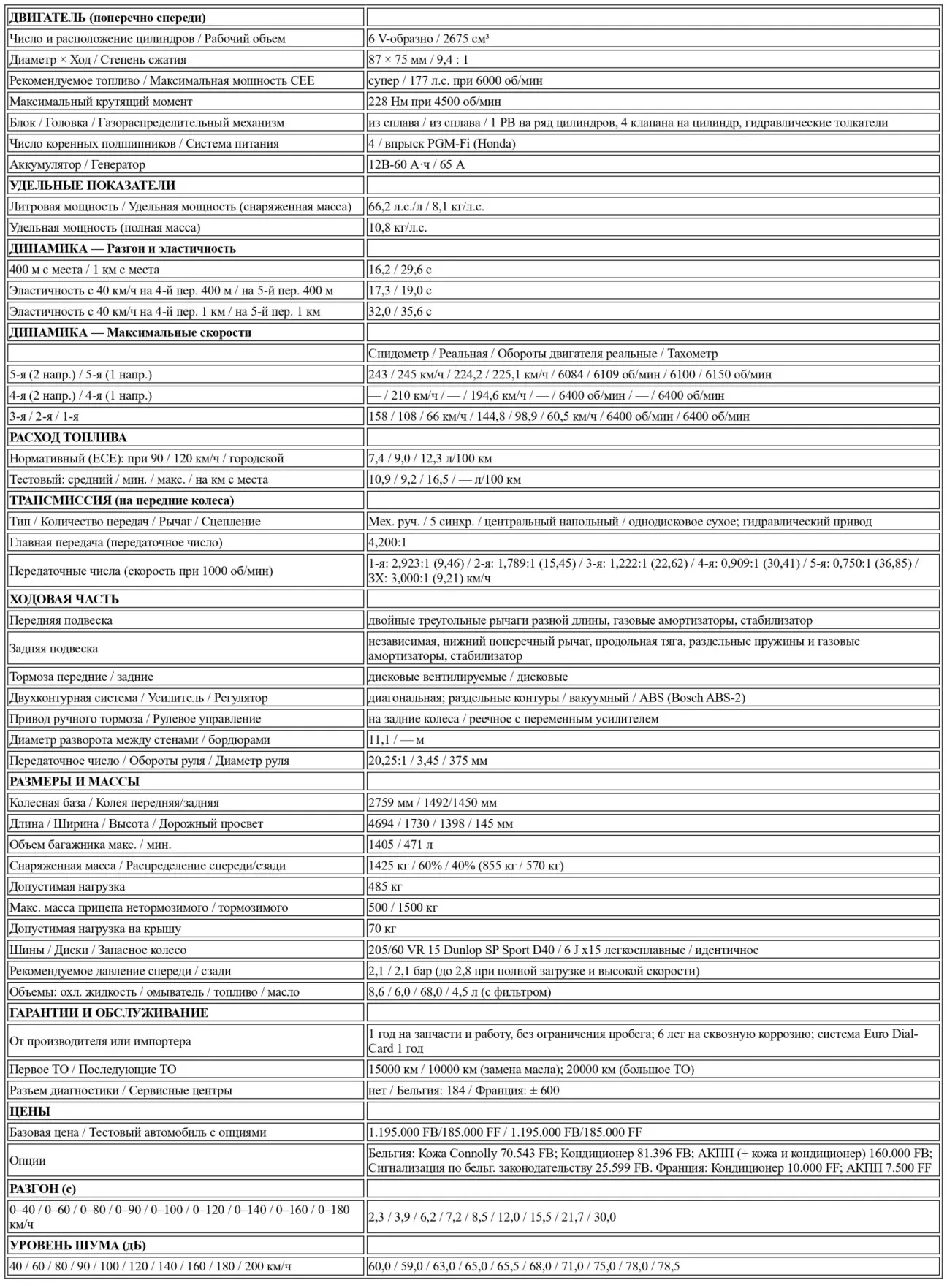 Базовая архитектура Honda V6 остается неизменной. Особенностью является 90-градусный развал цилиндров (двигатель получается ниже, что позволяет проектировать покатые носы, столь любимые Honda и Rover), в то время как обычно этот угол составляет 60°. Другая деталь: четыре клапана на цилиндр приводятся лишь одним распределительным валом в каждой головке. Впускные клапаны управляются напрямую, выпускные — через коромысла. Во время нашего первого теста 825 Sterling мы утверждали, что существовало два варианта силовых агрегатов в зависимости от того, установлена ли пятиступенчатая «механика» или четырехступенчатый «автомат». Двигатель последнего был чуть менее мощным, но имел гораздо более ровную кривую момента. Именно эта философия в итоге возобладала при создании нового 2,7-литрового мотора, а увеличение рабочего объема должно было принести несколько дополнительных лошадиных сил.