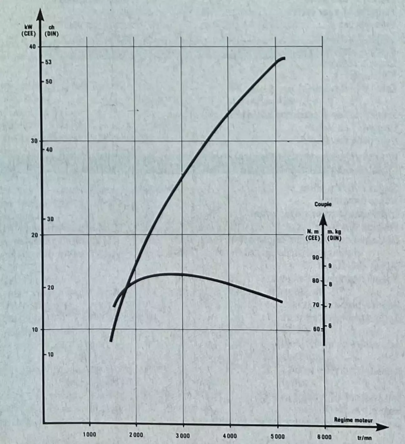 Словом, этот новый двигатель развивает 53 л.с. при высоких для дизеля 5000 об/мин. По сравнению с 60 л.с. у Peugeot и Fiat это немного, но в пересчете на литраж малый 1360-кубовый мотор демонстрирует самую высокую удельную мощность в категории: 39 л.с./литр, что уже предвещает хорошую живость и высокий КПД. Со стороны момента всё менее радужно — 83 Нм при 2500 об/мин; Uno, 205 и R5 предлагают более 100 Нм. Но Citroën компенсирует это отставание удивительной быстротой набора оборотов и, в целом, некоторой «легкостью» в работе.
