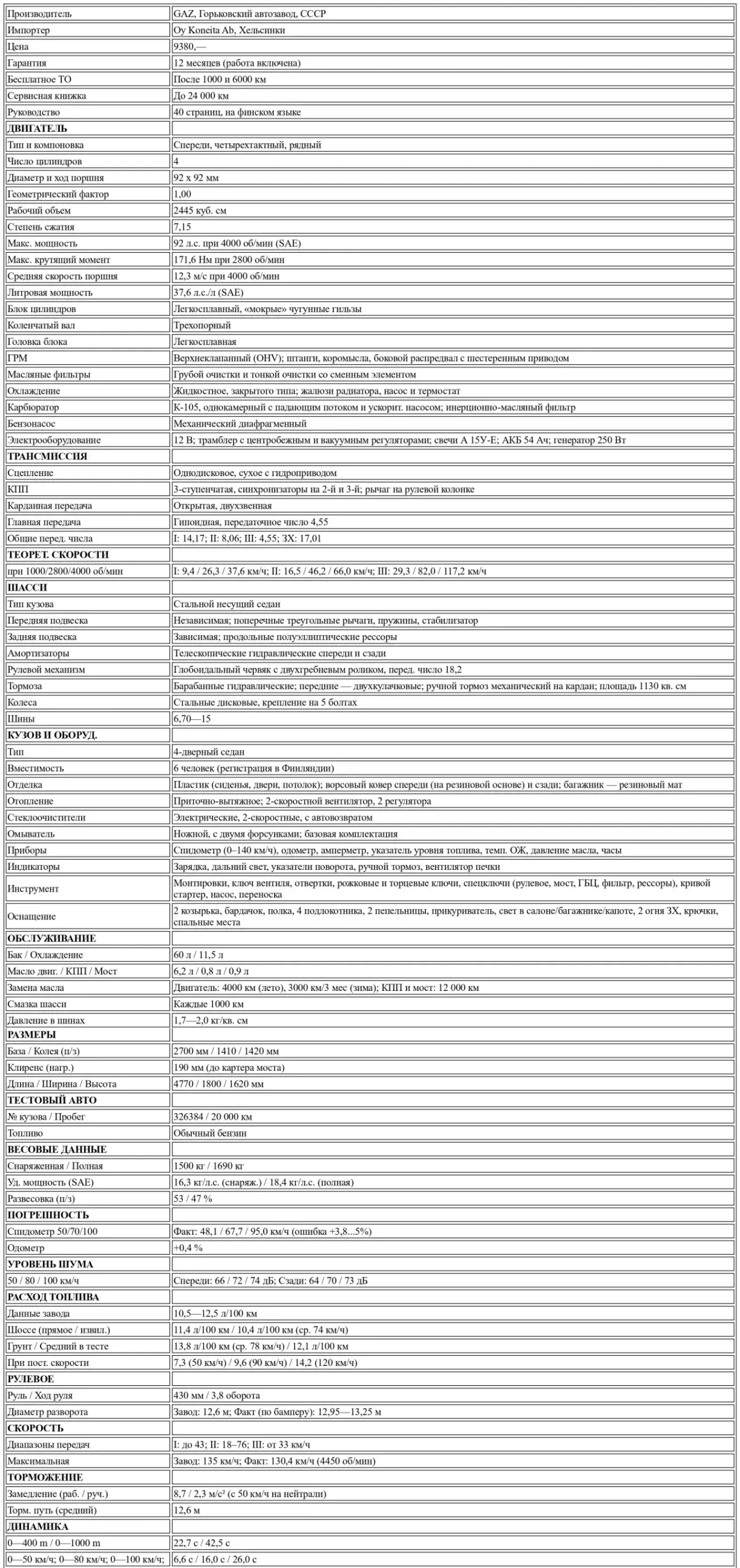 Эта статья дала многим читателям нашего журнала повод обратиться в редакцию с письмами. И, как всегда, мнения кардинально разошлись. Издание обвиняли в предвзятости и неуместной «рекламе» советских автомобилей. Другие же сочли материал познавательным, а некоторых он побудил поделиться собственным опытом, подтверждающим выносливость и отличные эксплуатационные качества русских машин. Одним из итогов этой «войны писем» — которая, к слову, занимает в истории Tekniikan Maailma второе место по масштабности сразу после незабвенной полемики вокруг Volkswagen — стало решение редакции освежить знакомство с моделью. Отметив, что результаты тест-драйва Volga были опубликованы еще в марте 1959 года, мы сочли, что время пришло. Кто знает, насколько сильно меняется советская модель автомобиля за 6 лет...