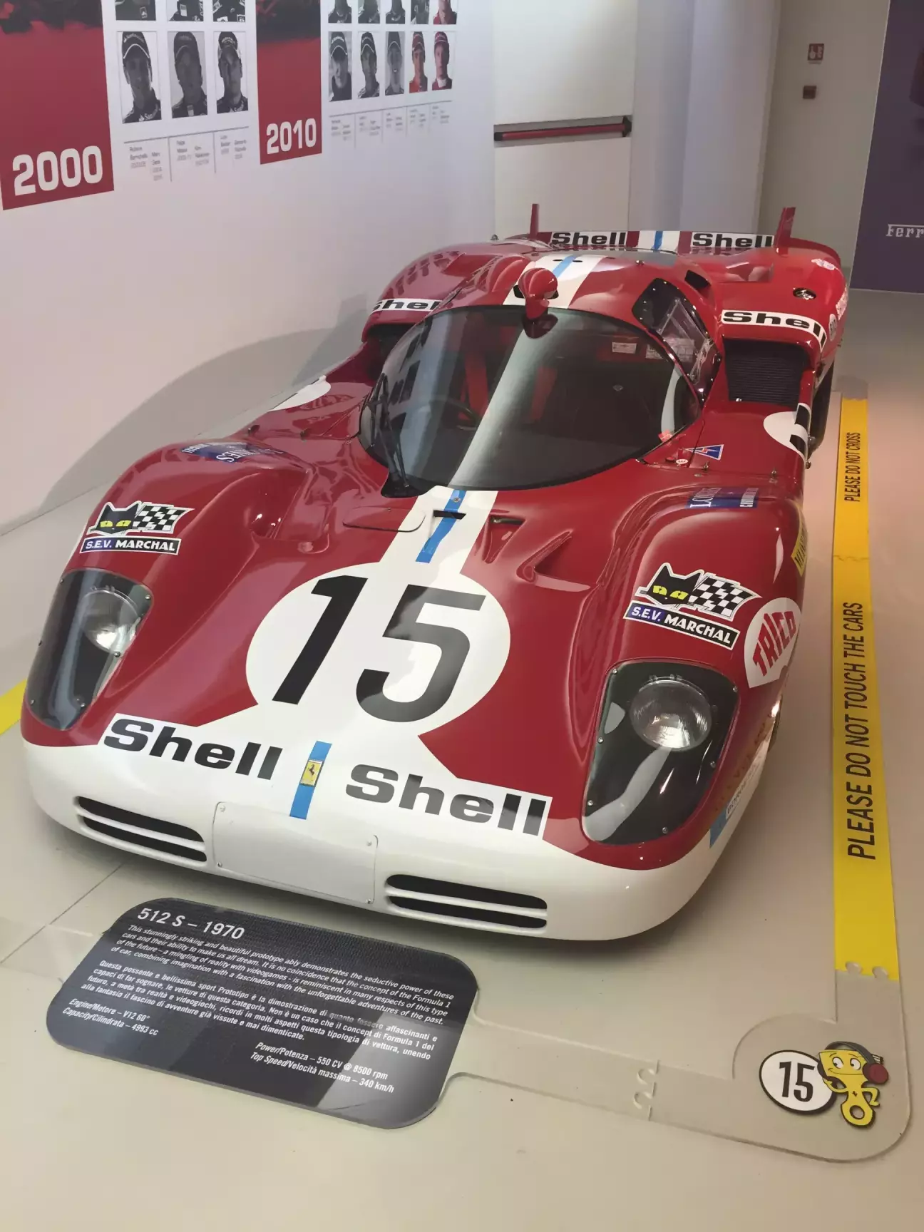 Ferrari 512 S — це вже справжній гоночний прототип, створений для Le Mans і інших гонок на витривалість. Під капотом — 5.0-літровий V12 потужністю близько 550 к.с. Максимальна швидкість перевищувала 330 км/год. Цей автомобіль створювався спеціально для боротьби з Porsche 917. Ferrari 512 S виграв гонку 12 годин Sebring у 1970 році.