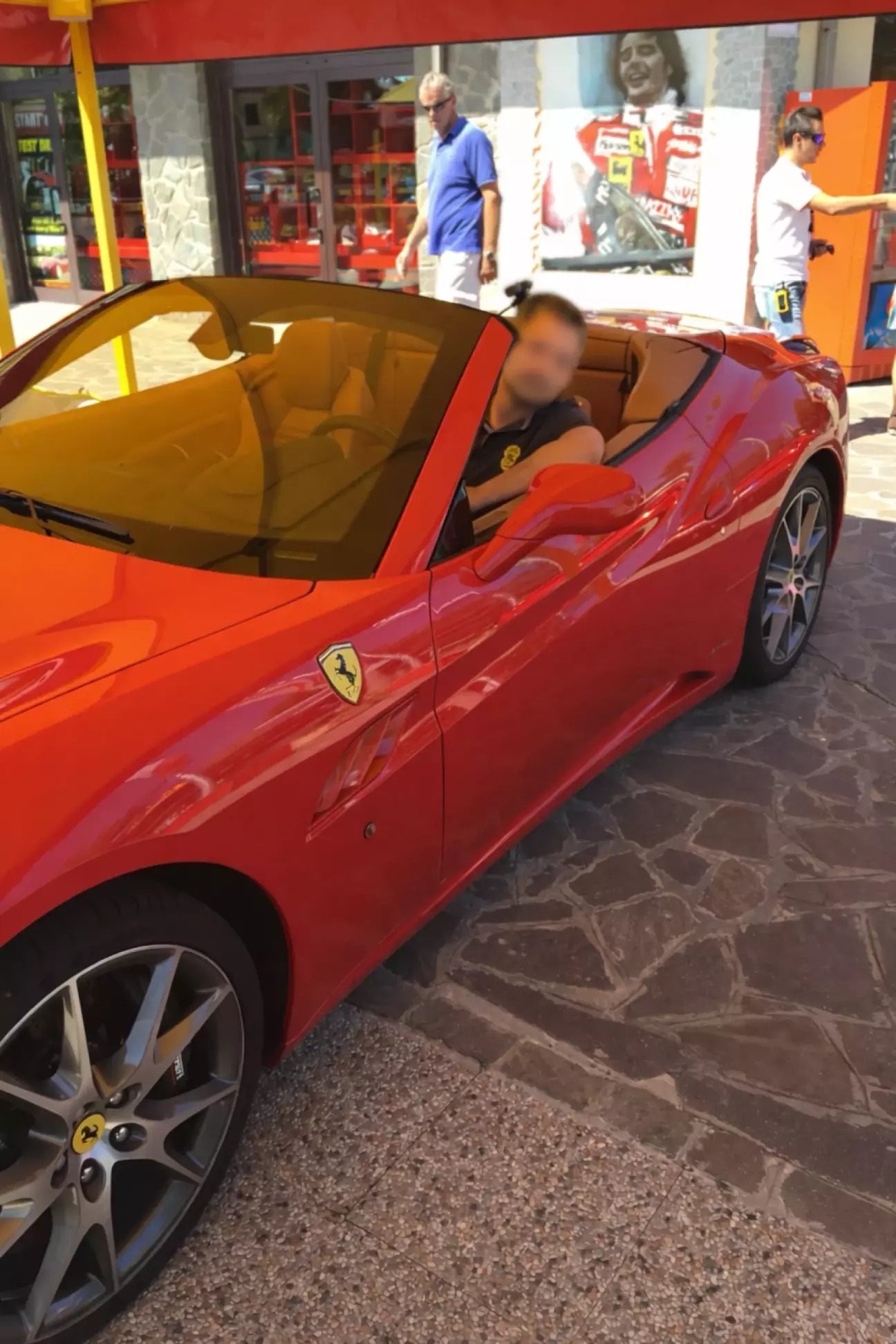 Після музею я вирішив зробити тест-драйв Ferrari California. Це було прямо поруч, біля музею, де працюють невеликі прокатні компанії. На парковці стояло кілька Ferrari. Після оформлення необхідних документів, інструктор підвів мене до червоної California.