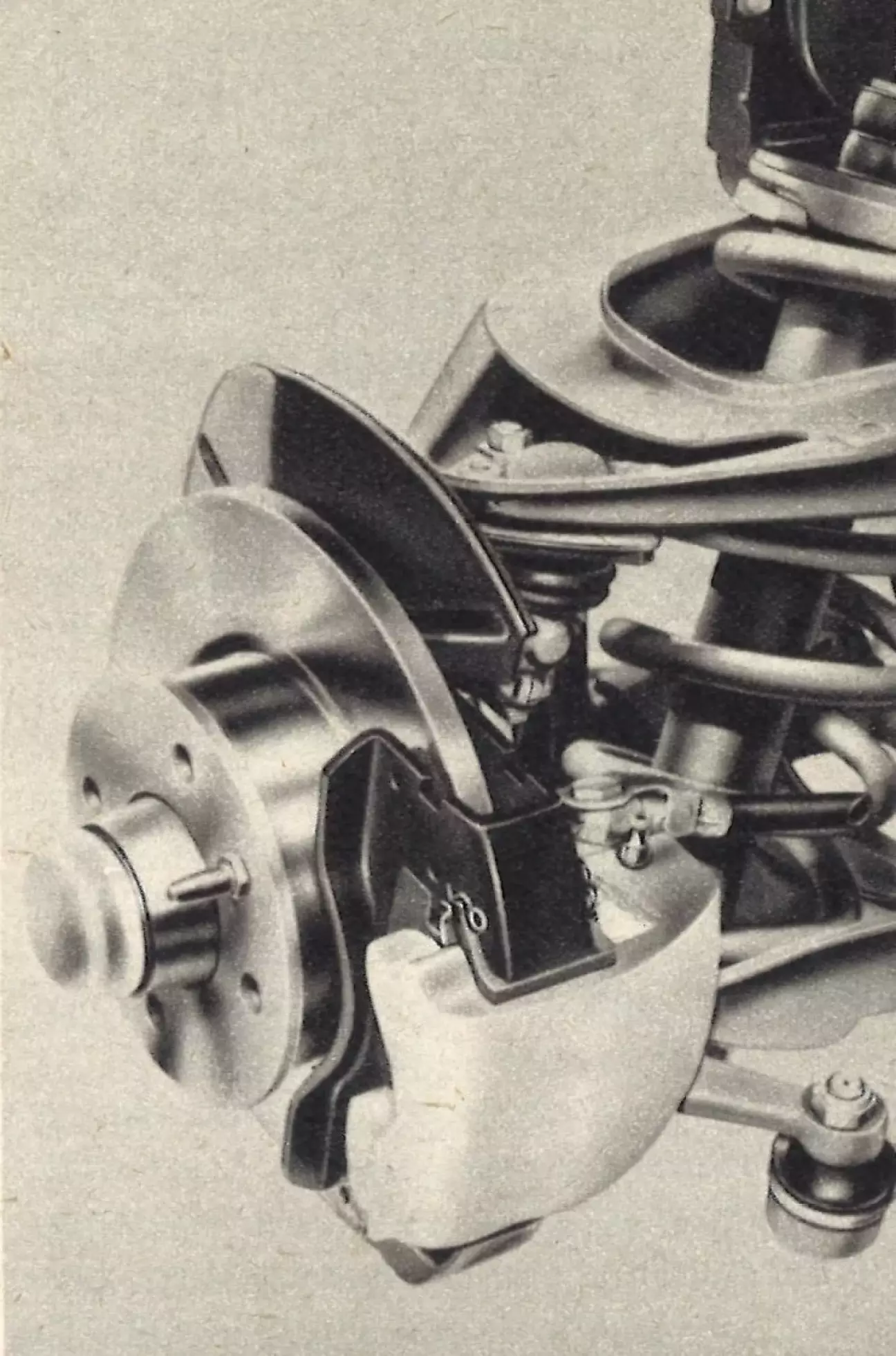 Преимущество винтовых пружин — в малом внутреннем трении; они срабатывают легче, чем многолистовые рессоры. Это и большая мягкость подвески обуславливают удивительно высокий комфорт хода 124-го. Для автомобиля с относительно короткой базой и малым весом он идет необычайно плавно, проглатывая большие и малые неровности как на низкой, так и на высокой скорости. Только длинные волны с большим перепадом высот вызывают заметную вертикальную раскачку кузова, а на поперечные стыки передние колеса иногда отзываются сильным толчком. Очевидно, ход передней подвески в интересах управляемости существенно меньше, чем задней, которая выполняет основную работу по подрессориванию и принимает на себя разницу в нагрузке. Но и передние колеса, также имеющие пружины и подвешенные по классической схеме на поперечных рычагах, глотают обычные дорожные изъяны легко и чисто.