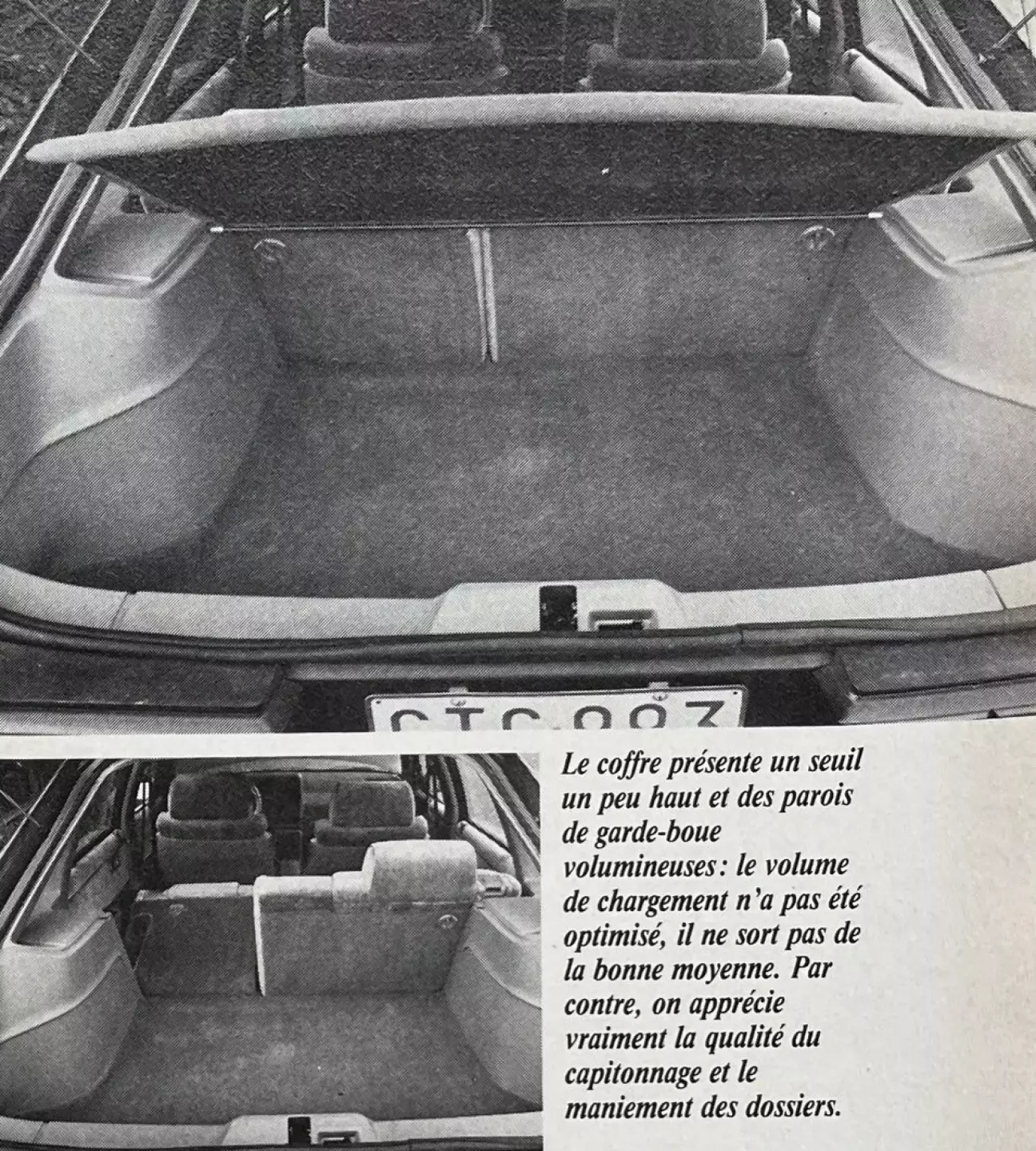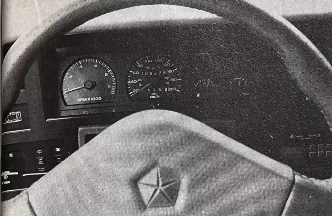 При закрывании двери нашего Chrysler издают звонкий хлопок, характерный для американских (супер)продукций. Однако, хотя они и не знают, что такое глухой звук, мы не нашли их тяжелыми. Таким образом, как в деталях (отметим также не слишком тяжелый капот... поддерживаемый двумя пружинами-улитками, которые скрипят, когда их смазка подсыхает), так и в целом, кузов GTS отражает определенную визуальную легкость при умеренных габаритах. Вот «американец», который не заставит нас выглядеть последним растаманом на районе. Со своей задней дверью (и секционной спинкой дивана 40/60) он по всем статьям сопоставим с остальной мировой продукцией пятидверных седанов «среднего высшего семейного класса» (Citroën BX, Fiat Croma, Ford Sierra, Mazda 626, Nissan Bluebird и Toyota Carina). Параметры вместимости будут в его пользу: он самый длинный, оставаясь при этом слишком приземистым, чтобы тягаться с Renault 25, Rover 820 Fastback или Saab 9000. Его отцы, впрочем, пытались назвать его Chrysler C522i Turbo, чтобы скопировать невесть какую серию баварской фирмы... Существует несколько экземпляров (с кожей, квадратными линзами фар, специфической решеткой и, конечно, наклейкой). После вердикта рулетки — вердикт глаз: несмотря на Cx, который должен был бы его дискредитировать (0,37!), его линии нравятся. Качество отделки панелей и дисков только подтверждает это доброе мнение.