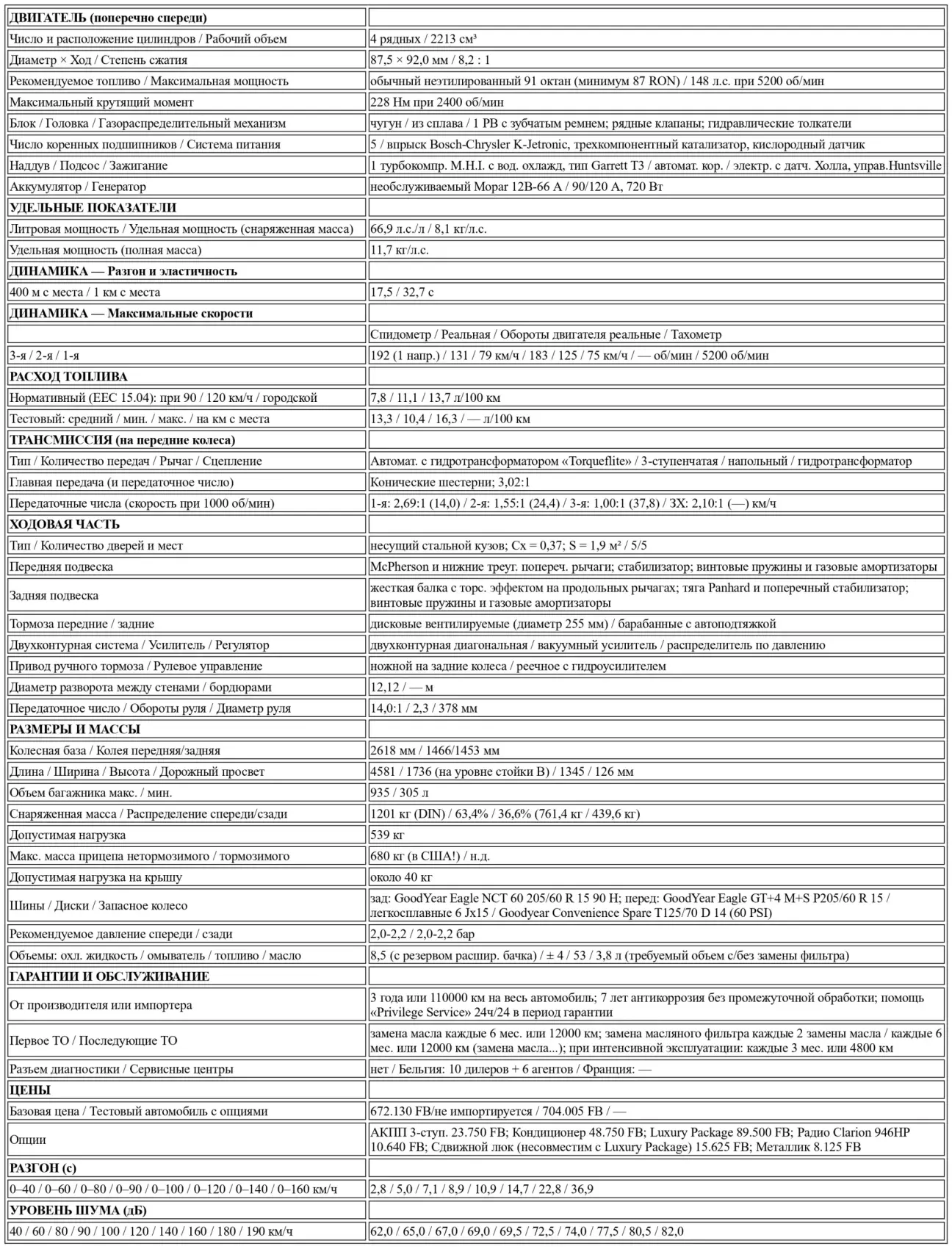 Перевод теста Chrysler LeBaron GTS Turbo от бельгийского автомобильного журнального издания Le Moniteur de l’Automobile, № 910, Октябрь, 1988.