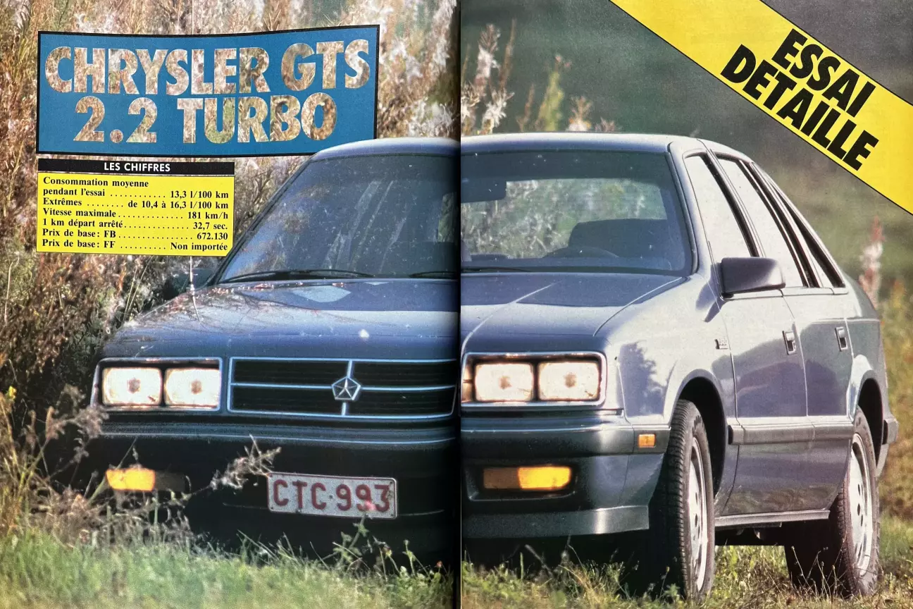 К 1988 году все сказано: у всех наших импортных Chrysler есть выбор между турбомотором 2213 см³ или атмосферником 2501 см³. Последний, заметно менее пылкий, но отличающийся большей мягкостью работы, не является предметом данного теста. Во Франции компания Sonauto воспользовалась Парижским автосалоном, чтобы впервые предложить ES и LeBaron с этим 2,5-литровым двигателем с наддувом. Отметим, что наш 2213 см³ (Turbo 1) имеет свою спортивную производную мощностью 174 л.с. (Turbo 2) (см. выше). По последним сведениям, разработка этого мотора в многоклапанном варианте (для Chrysler-Maserati TC, см. выше) буксует, а квоты производства этого итало-американского престижного кабриолета были значительно сокращены, в том числе из-за проблем с качеством. Говорят даже о разводе; разве де Томазо не утверждал всегда, что в Хайленд-Парке ничего не смыслят в моторах? Для более быстрого технического прогресса Chrysler установил на свое новейшее купе Plymouth Barracuda агрегат от Mitsubishi Galant DOHC 16V. Это первый осязаемый результат проекта совместного предприятия Diamond-Star Motors с японским партнером. В настоящее время детройтский гигант заглядывается на свой последний каприз: Lamborghini и ее ореол величия. Но вернемся к нашему скромному GTS!