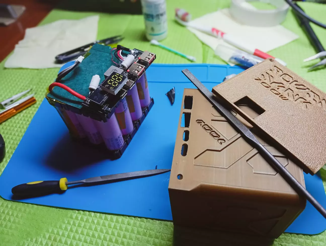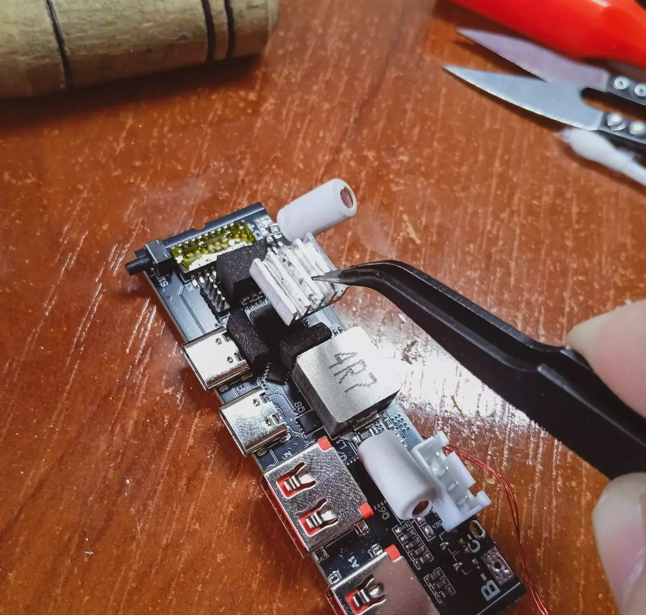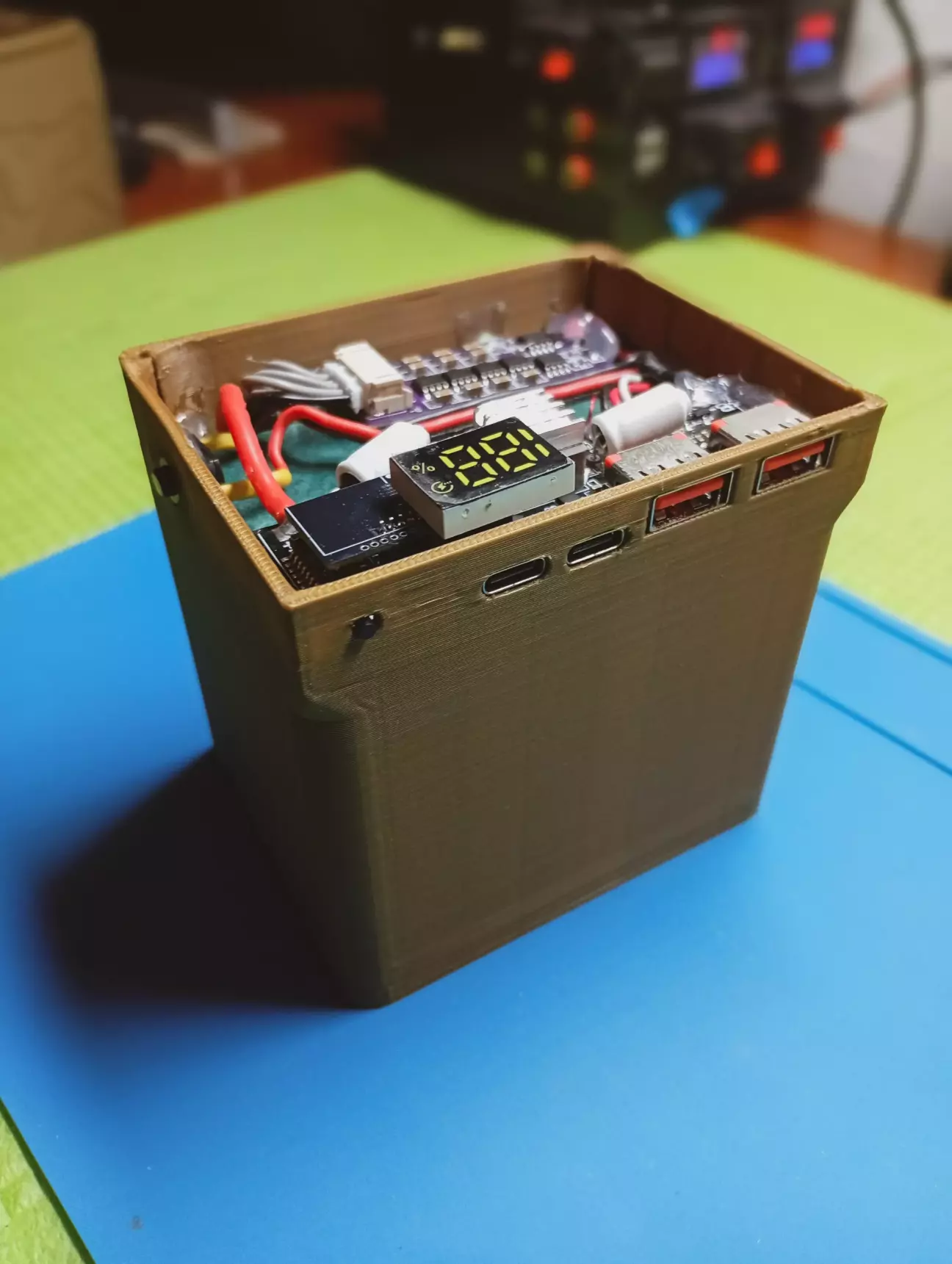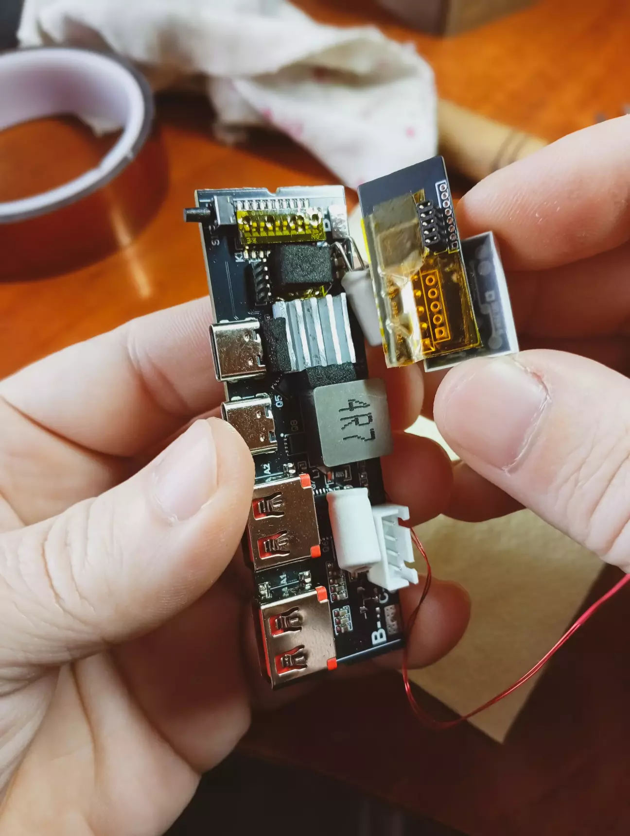 На платі павербанку, прийшлося випаяти фішку монітора, так як не влазить в корпус, дроти з неї впираються в кришку