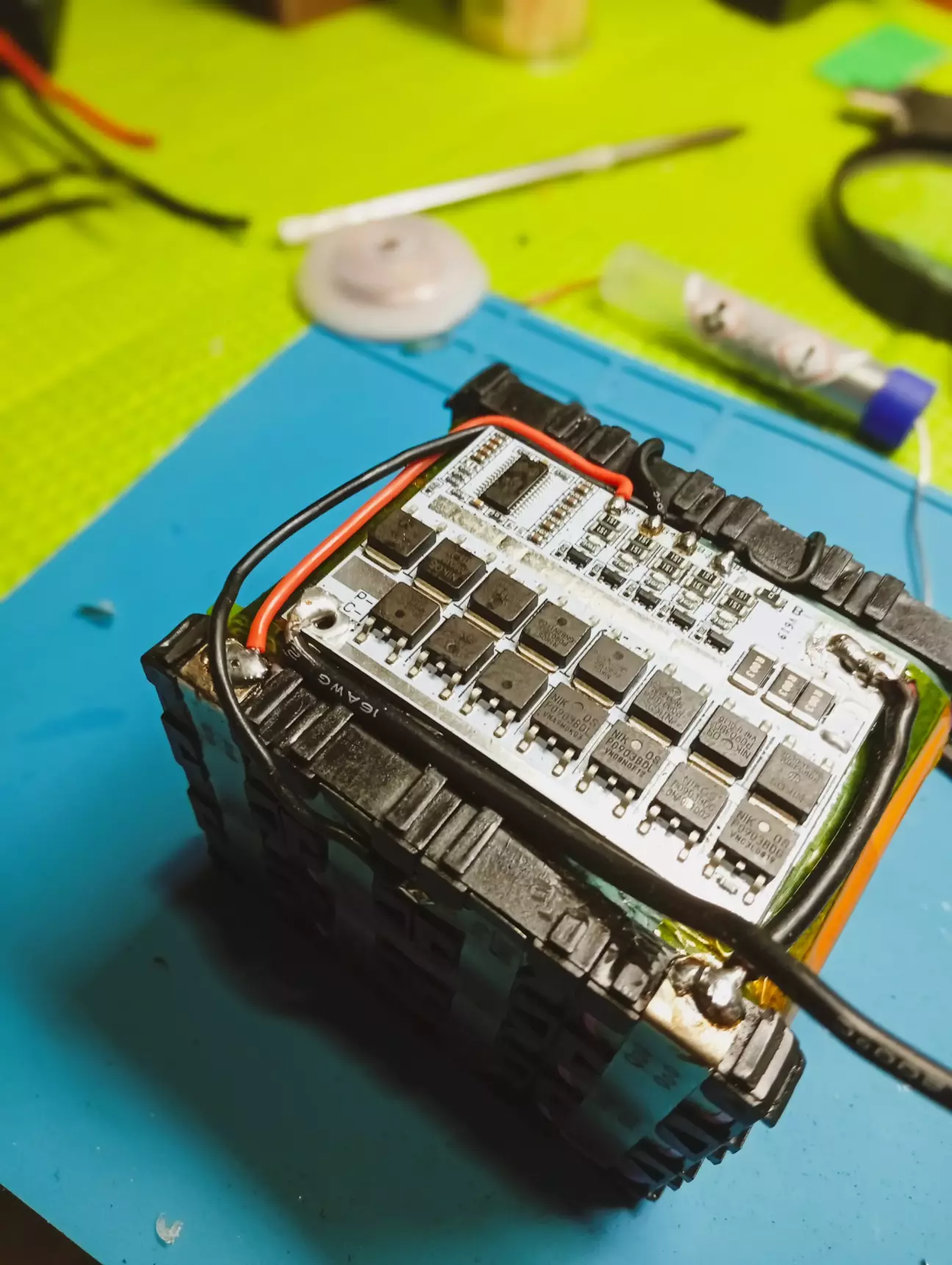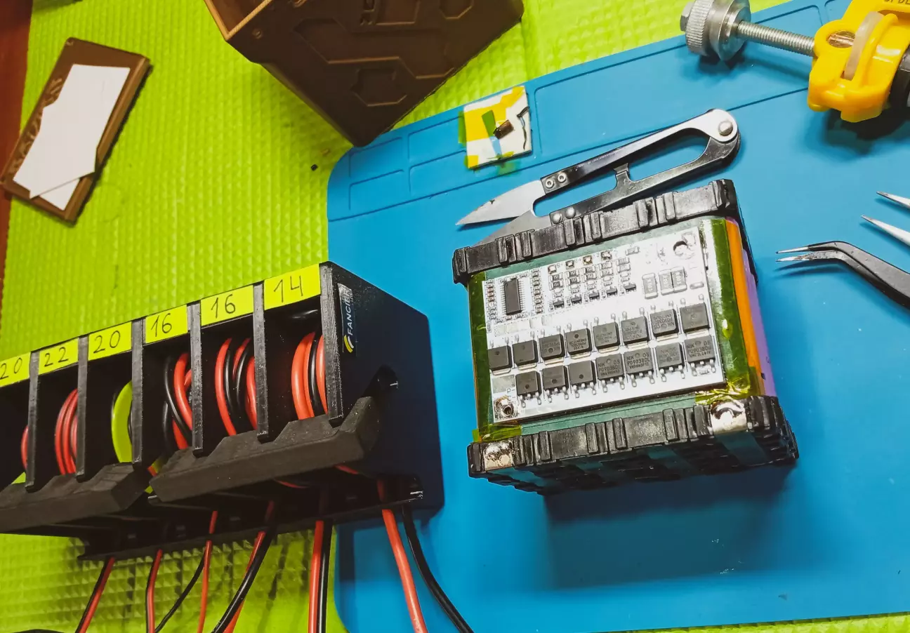 Перед збіркою, на бмс випаяв перемичку і пару резисторів, тому що плата під 3s, зробив під 4s