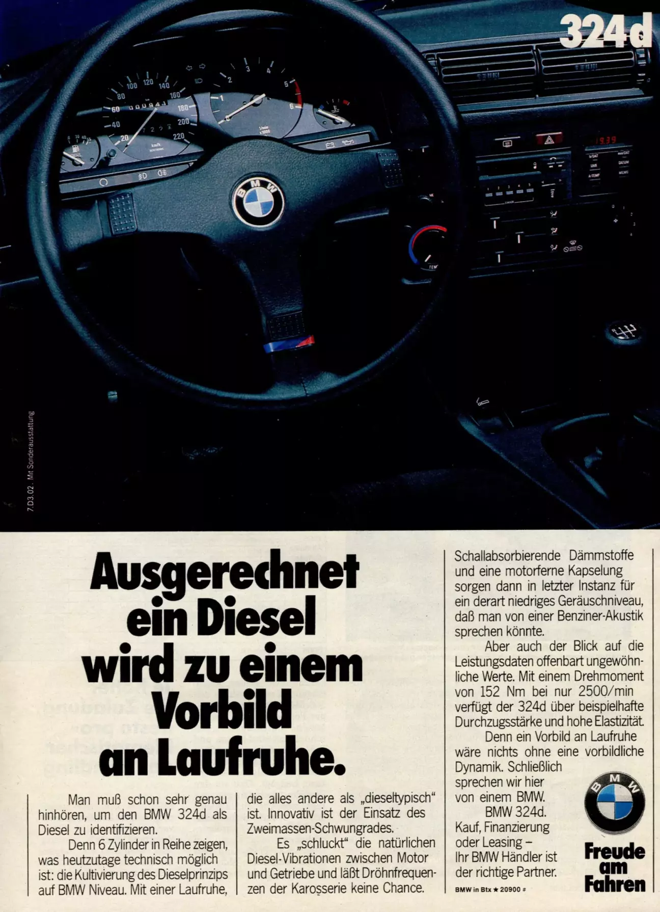 В этом тесте мне понравилась не сама машина, а своеобразный юмор редакции журнала, которая разместила прямо между страницами теста Alpina B11 рекламу самой слабой машины фирмы BMW — дизельную 324d.