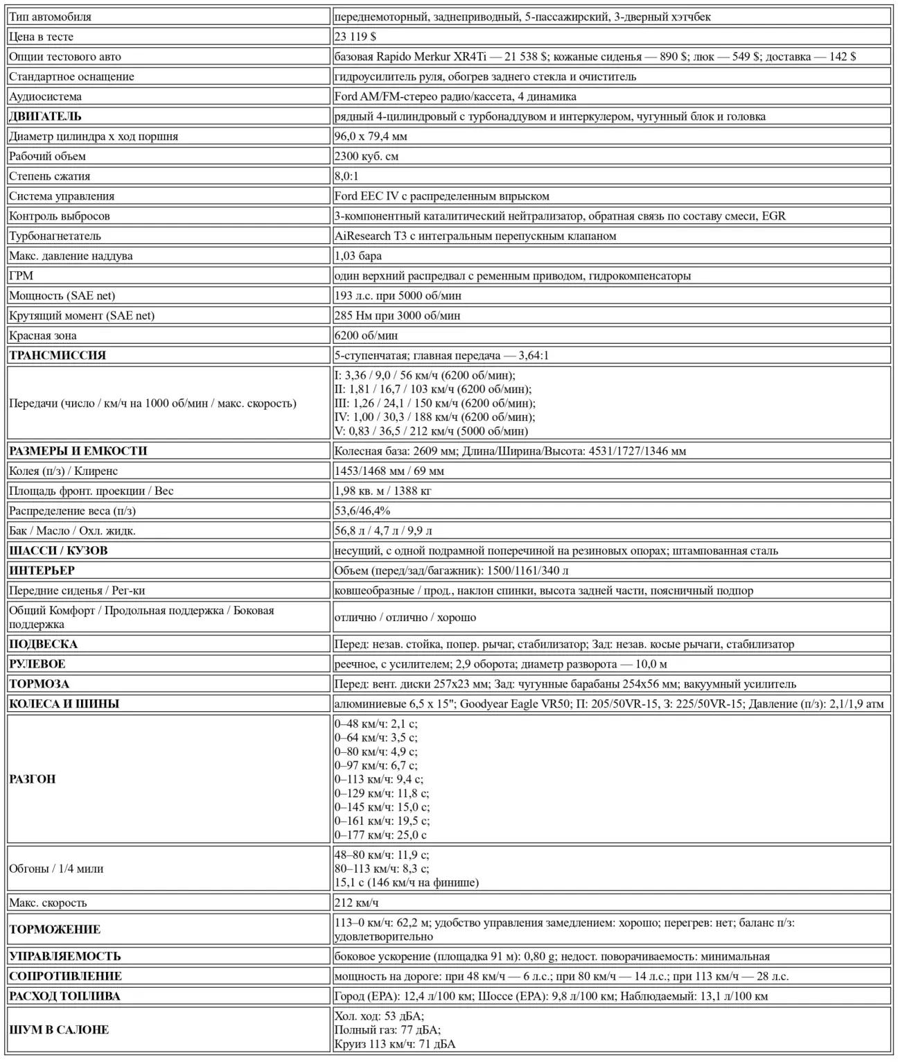 Перевод теста Rapido Merkur XR4Ti (Ford Sierra) от американского автомобильного журнального издания Car and Driver, Ноябрь, 1985.