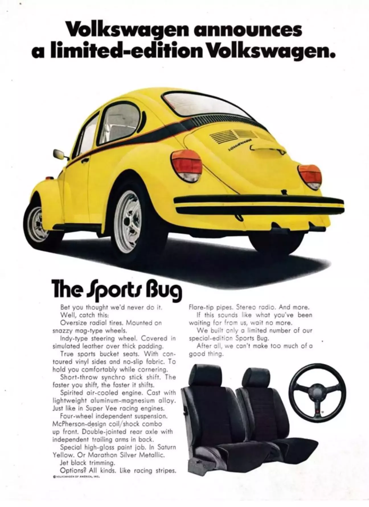 Це рекламний плакат обмеженої серії автомобіля Volkswagen Beetle під назвою Sports Bug («Спортивний Жук»).