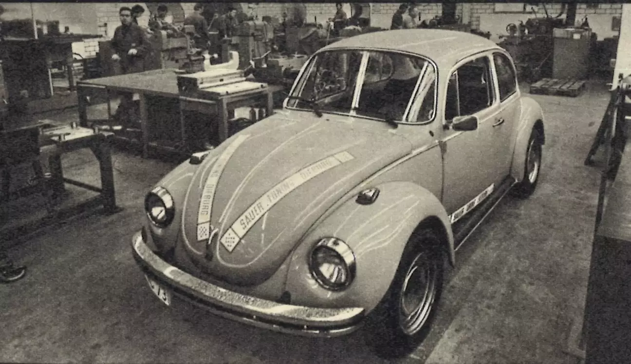 Если вы будете искать в Дибурге (между Дармштадтом и Ашаффенбургом) автосалон или хотя бы заправку под названием Sauer & Sohn, то будете искать напрасно. Скорее, это весьма внушительный комплекс зданий, в котором желание получить пару дополнительных лошадиных сил для VW кажется почти комичным. Заводские цеха полны станков, за которыми работают около 170 человек. Но лишь немногие из них имеют отношение к добыче лошадиных сил, так как основной деятельностью прецизионного завода Sauer & Sohn является производство инструментов. К нему примыкают цех по шлифовке цилиндров и коленвалов, отдел по переоборудованию бензиновых двигателей на газ и различные представительства. Поэтому совсем не удивительно, что за вывеской Sauer & Sohn скрывается лишь вошедший в дееспособный возраст сын (48 лет), который занимается тюнингом VW без спортивных амбиций. Он рассматривает это исключительно как прибыльный побочный заработок, который случайно возник благодаря наличию соответствующих дорогих станков.
