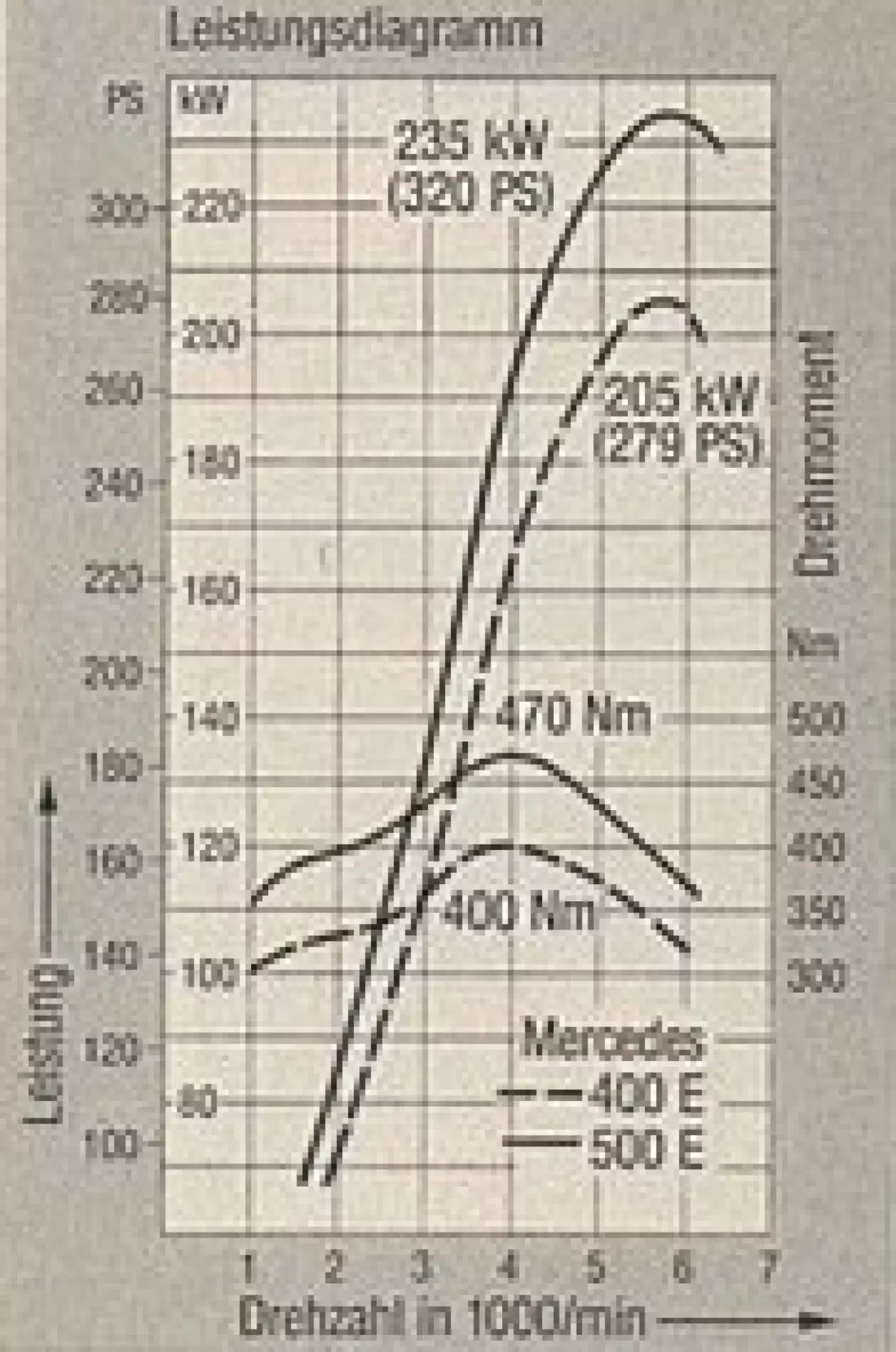 На первый взгляд решение кажется простым: зачем отдавать более 144 000 марок за 326 л.с., если уже за 92 000 марок предлагаются вполне достаточные 279 «лошадок»? Однако при этом нельзя упускать из виду, что топовая модель серии среднего класса обладает не только более крупным и мощным двигателем V8, но и спортивно настроенной ходовой частью, а также роскошным оснащением — например, противобуксовочной системой (ASR), кондиционером и радиоприемником. Mercedes 500 E играет роль готового к любым вызовам люксового седана со спортивным уклоном. В поворотах он имеет чуть большие резервы, демонстрирует меньше кренов и раскачки кузова, за счет чего управляется на долю секунды точнее. Взамен приходится мириться с небольшими ограничениями в комфорте подвески, который, впрочем, сам по себе все равно остается выше среднего. Кроме того, 500 E обладает таким запасом мощности, который оставляет в тени даже весьма бодро едущий 400 E.