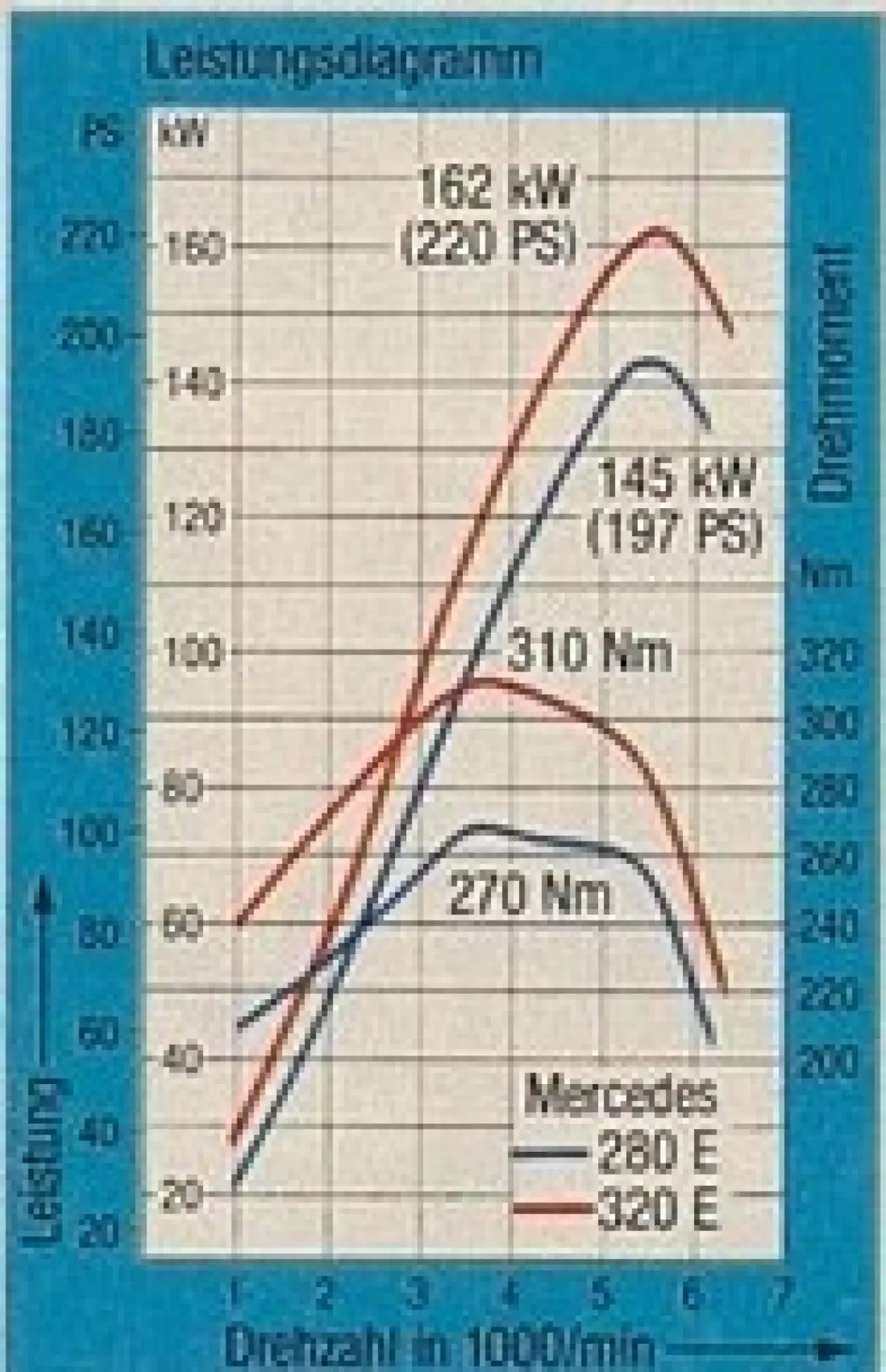 В сегменте шестицилиндровых моделей Mercedes оценивает разницу в рабочем объеме и мощности при прочих технически идентичных компонентах гораздо выше, чем в случае с четырехцилиндровыми машинами: переход от 280 E к 320 E обойдется в 9006 марок. За эту сумму, правда, предлагаются совершенно разные характеры — при этом нельзя однозначно утверждать, что более мощная модель лучше. Тот, кто избалован благородством «шестерок», должен выбрать 280 E. Его двигатель на удивление четко дистанцируется от первых четырехцилиндровых моторов Mercedes: во всем диапазоне оборотов он работает шелковисто, как турбина, набирает обороты практически без вибраций, а при быстрой езде по автобану почти полностью растворяется в общем шуме движения. При этом фактические динамические характеристики вне всяких сомнений, а тяга в нижнем диапазоне оборотов кажется особенно впечатляющей.