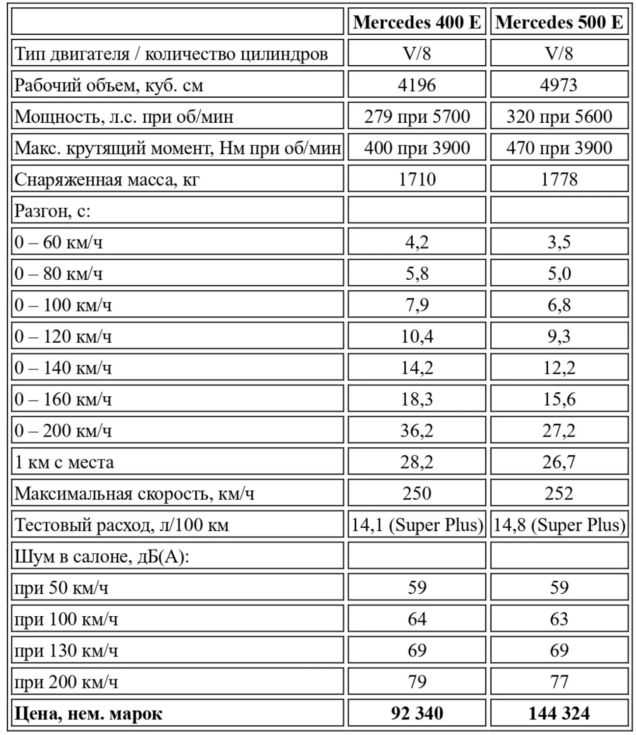Перевод теста Mercedes W124 версии 4 клапана на цилиндр 200 E vs 220 E, 280 E vs 320 E, 400 E vs 500 E от немецкого автомобильного журнального издания Auto Motor und Sport, № 23, 1992.