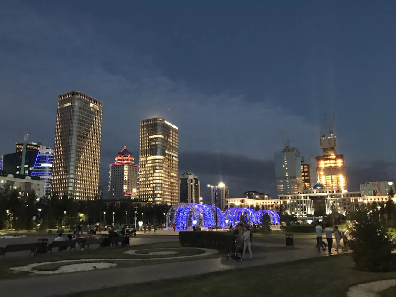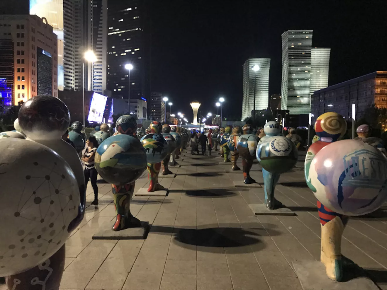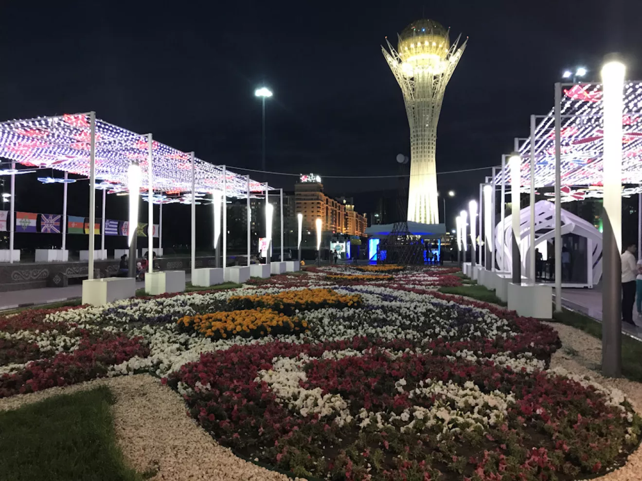 В центре все в огнях, Байтерек (это одна из достопримечательностей) понравился, жаль на EXPO 2017, которое рекламируют на каждом углу, не удалось попасть.